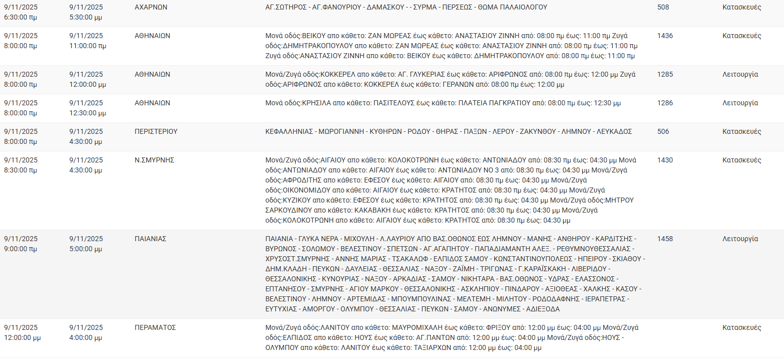 Διακοπές ρεύματος έχει προγραμματίσει για σήμερα, Κυριακή 9 Νοεμβρίου, ο ΔΕΔΔΗΕ σε διάφορες περιοχές της Αττικής.