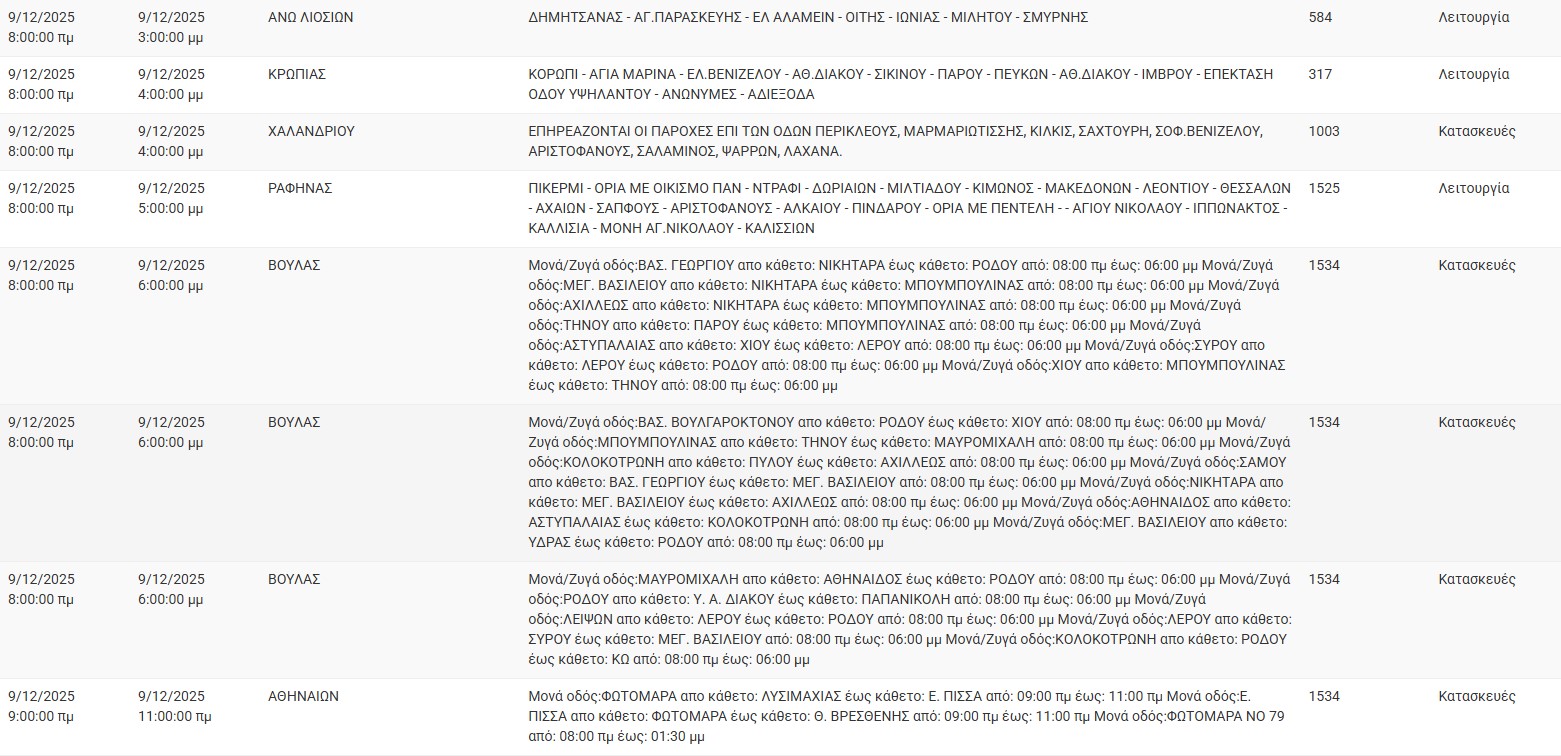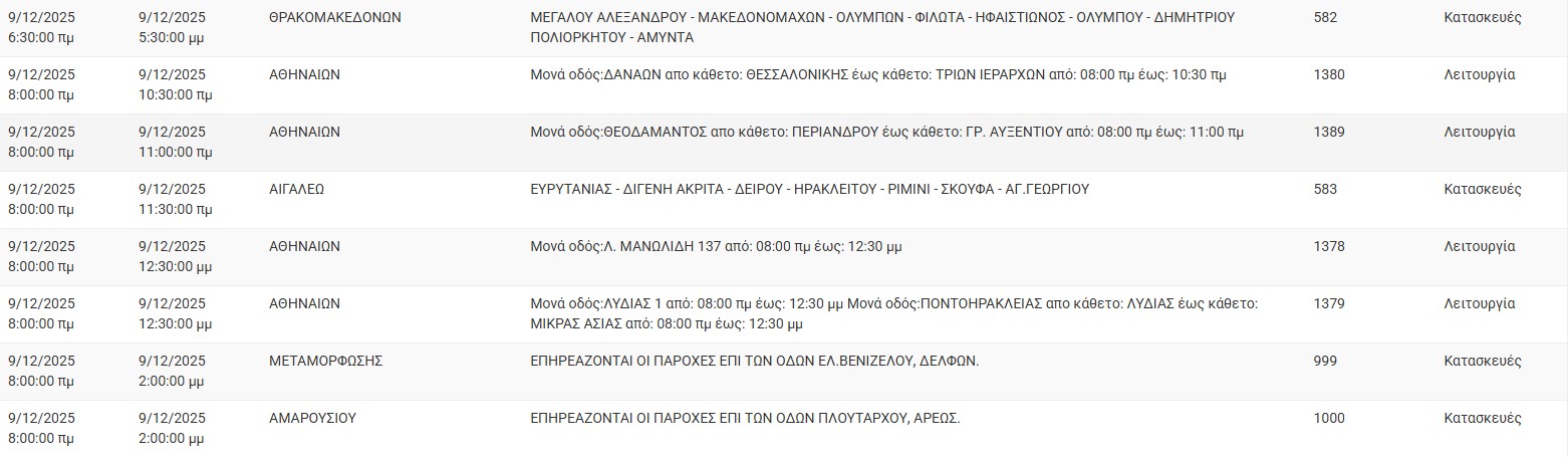 Διακοπές ρεύματος έχει προγραμματίσει για σήμερα, Τρίτη 9 Δεκεμβρίου 2025, ο ΔΕΔΔΗΕ σε διάφορες περιοχές της Αττικής.