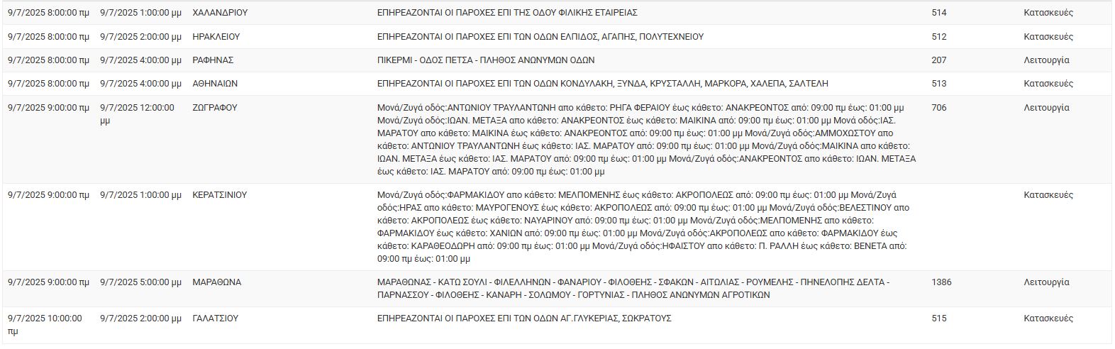 Διακοπές ρεύματος έχει προγραμματίσει για σήμερα, Τετάρτη 9 Ιουλίου, ο ΔΕΔΔΗΕ σε διάφορες περιοχές της Αττικής.