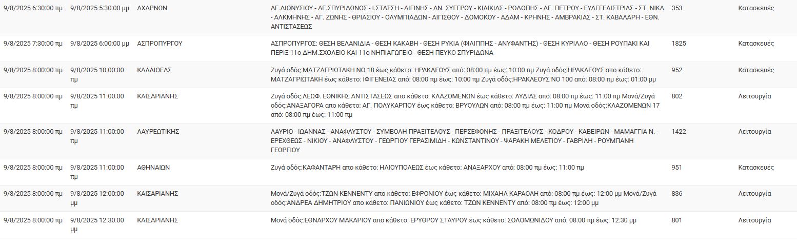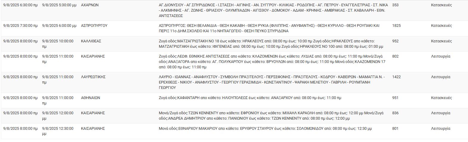 Διακοπές ρεύματος έχει προγραμματίσει για σήμερα, Σάββατο 9 Αυγούστου, ο ΔΕΔΔΗΕ σε διάφορες περιοχές της Αττικής.