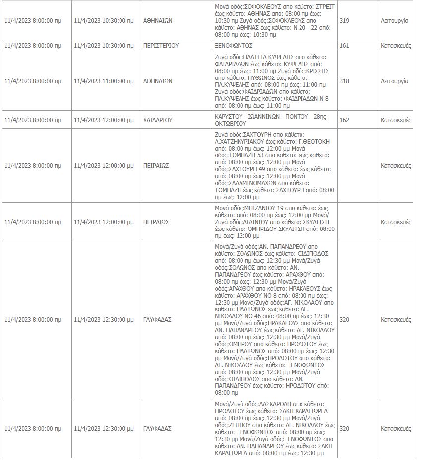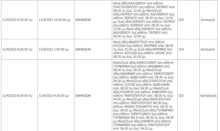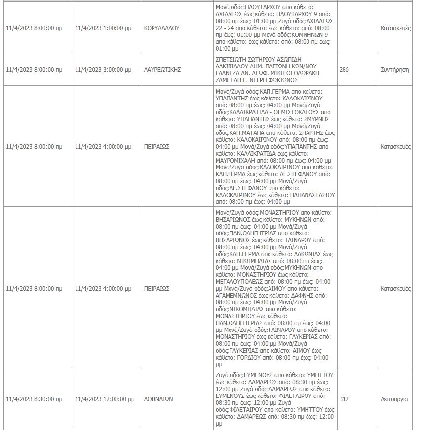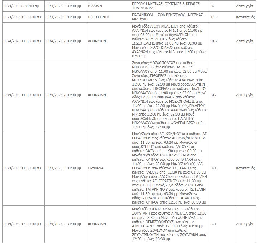 Συγκεκριμένα, όπως αναφέρει ο ΔΕΔΔΗΕ θα υπάρξουν προγραμματισμένες διακοπές ρεύματος σε περιοχές του κέντρου της Αθήνας, του Περιστερίου, του Χαϊδαρίου, του Πειραιά, της Γλυφάδας, του Κορυδαλλού, των Βιλλίων και της Λαυρεωτικής.