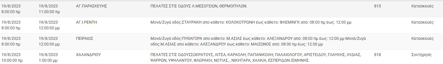 Διακοπές ρεύματος έχει προγραμματίσει για σήμερα, Σάββατο 19 Αυγούστου, ο ΔΕΔΔΗΕ σε διάφορες περιοχές της Αττικής.