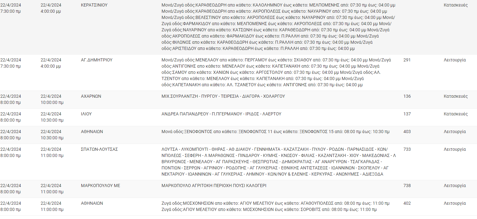 Δείτε σε ποιες περιοχές θα πραγματοποιηθούν διακοπές ρεύματος σήμερα 22/4 από τον ΔΕΔΔΗΕ