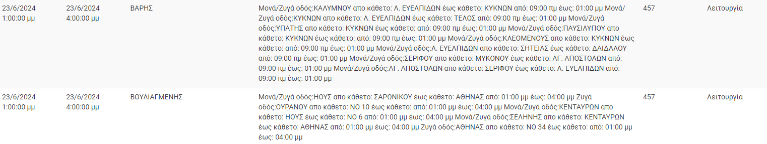 Διακοπές ρεύματος έχει προγραμματίσει για σήμερα, Κυριακή 23 Ιουνίου, ο ΔΕΔΔΗΕ σε διάφορες περιοχές της Αττικής.