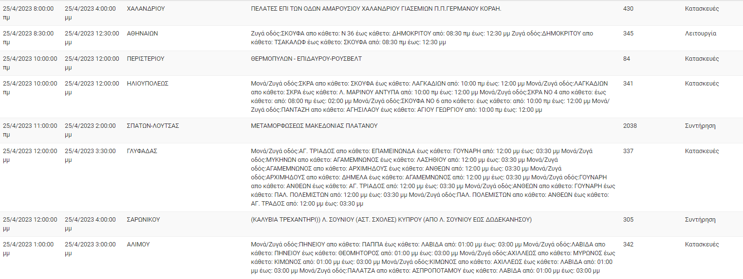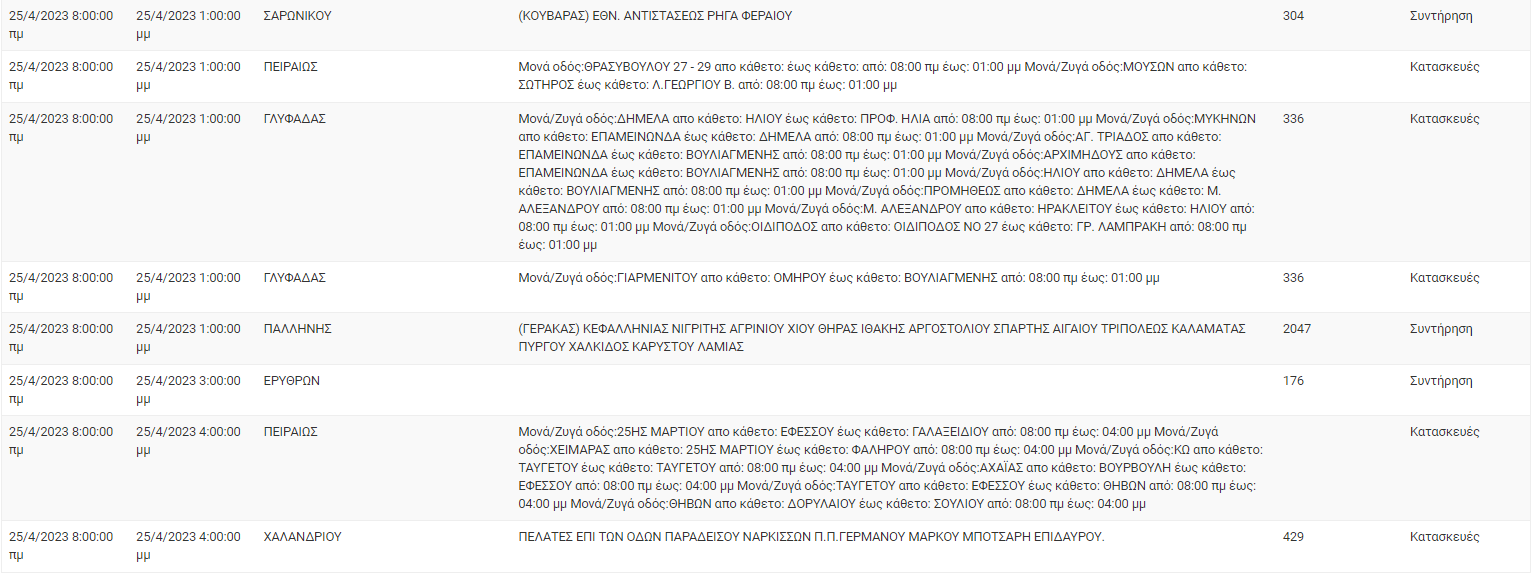 Συγκεκριμένα, όπως αναφέρει ο ΔΕΔΔΗΕ θα υπάρξουν προγραμματισμένες διακοπές ρεύματος σε περιοχές της Αγίας Βαρβάρας, του Περιστερίου, της Αθήνας, του Πειραιά, του Παλαιού Φαλήρου, του Λαυρίου, του Ασπροπύργου, του Σαρωνικού, της Γλυφάδας, της Παλλήνης, του Χαλανδρίου, της Ηλιούπολης, των Σπάτων-Λούτσας, του Αλίμου και της Πετρούπολης.