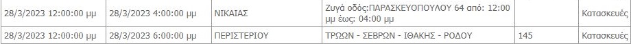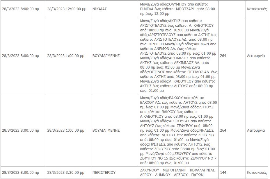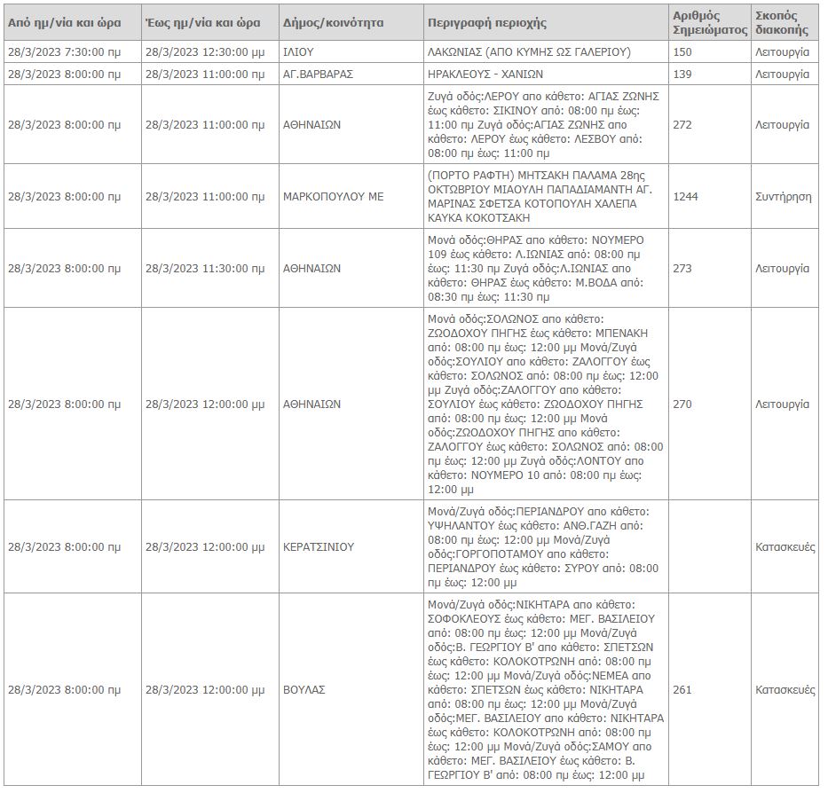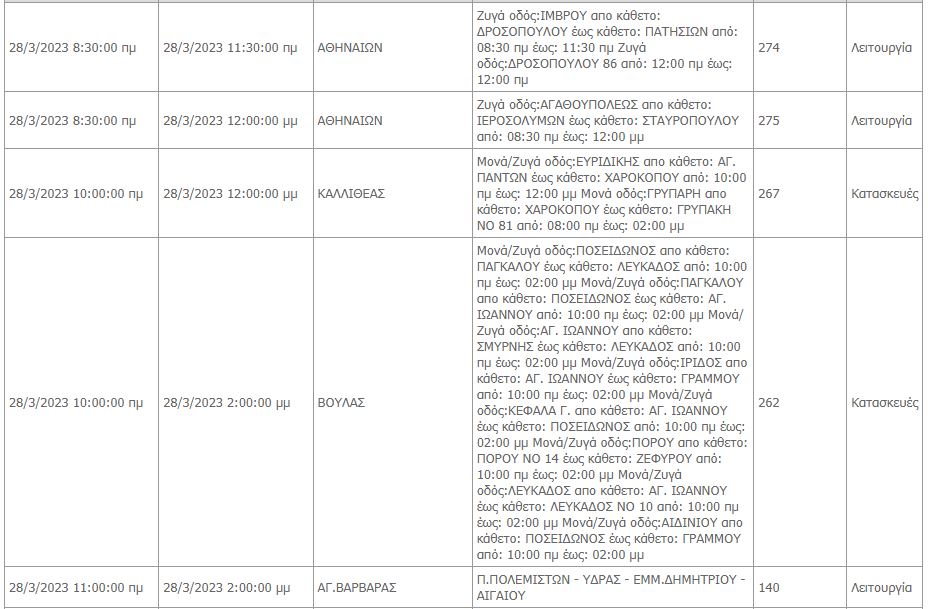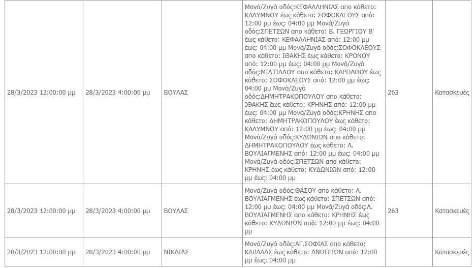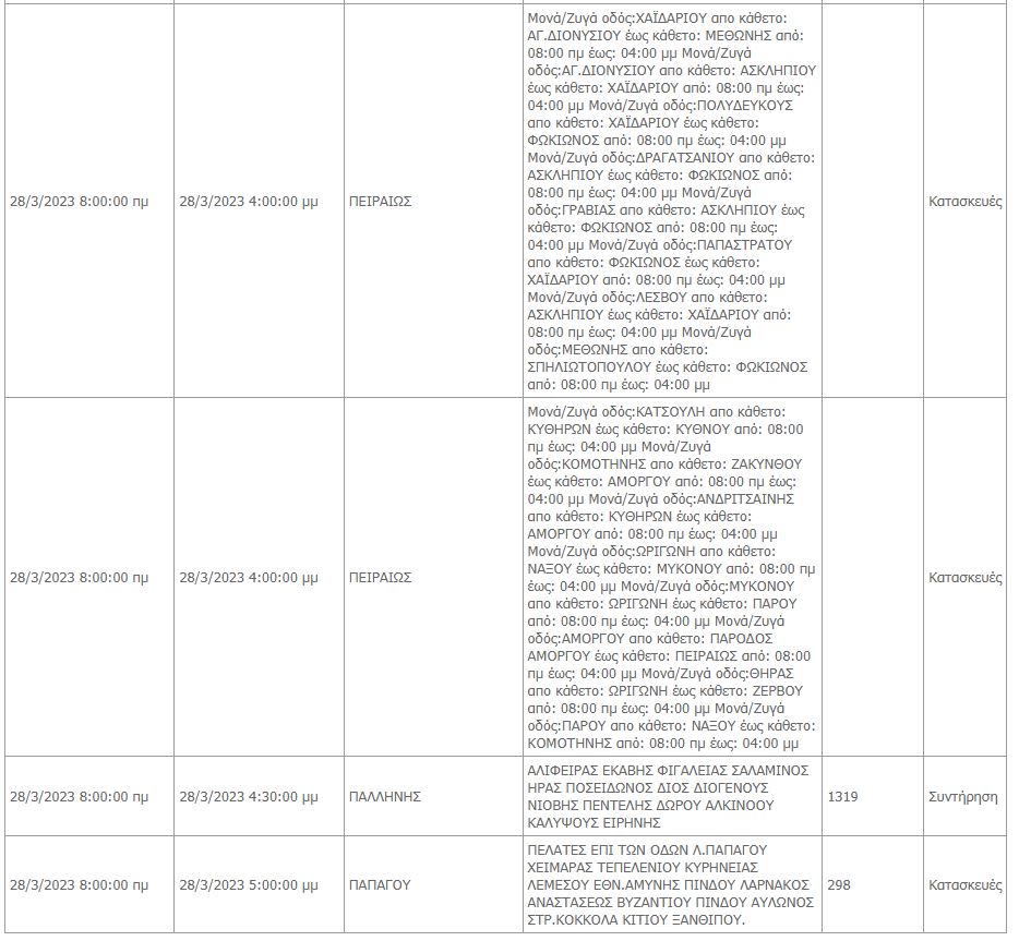 Δείτε εδώ αναλυτικά τις περιοχές και τις ώρες