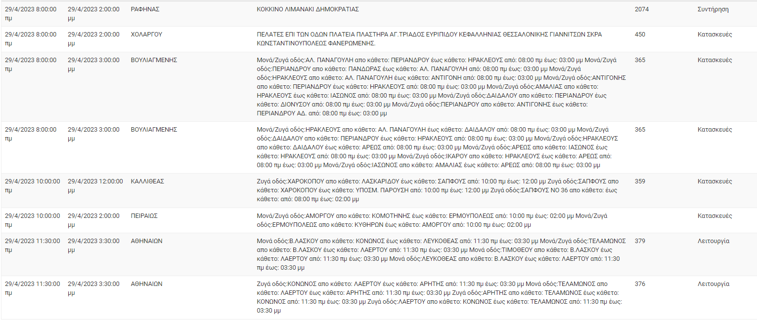 Συγκεκριμένα, όπως αναφέρει ο ΔΕΔΔΗΕ θα υπάρξουν προγραμματισμένες διακοπές ρεύματος σε περιοχές του Κερατσινίου, του Πειραιά, του Κορυδαλλού, της Αθήνας, του Αλίμου, του Αμαρουσίου, της Ραφήνας, του Χολαργού, της Βουλιαγμένης και της Καλλιθέας.