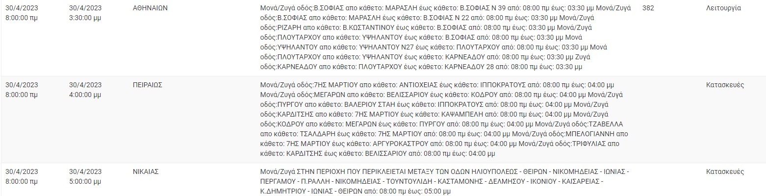 Συγκεκριμένα, όπως αναφέρει ο ΔΕΔΔΗΕ θα υπάρξουν προγραμματισμένες διακοπές ρεύματος σε περιοχές της Γλυφάδας, της Δάφνης, της Αθήνας, του Πειραιά και της Νίκαιας.