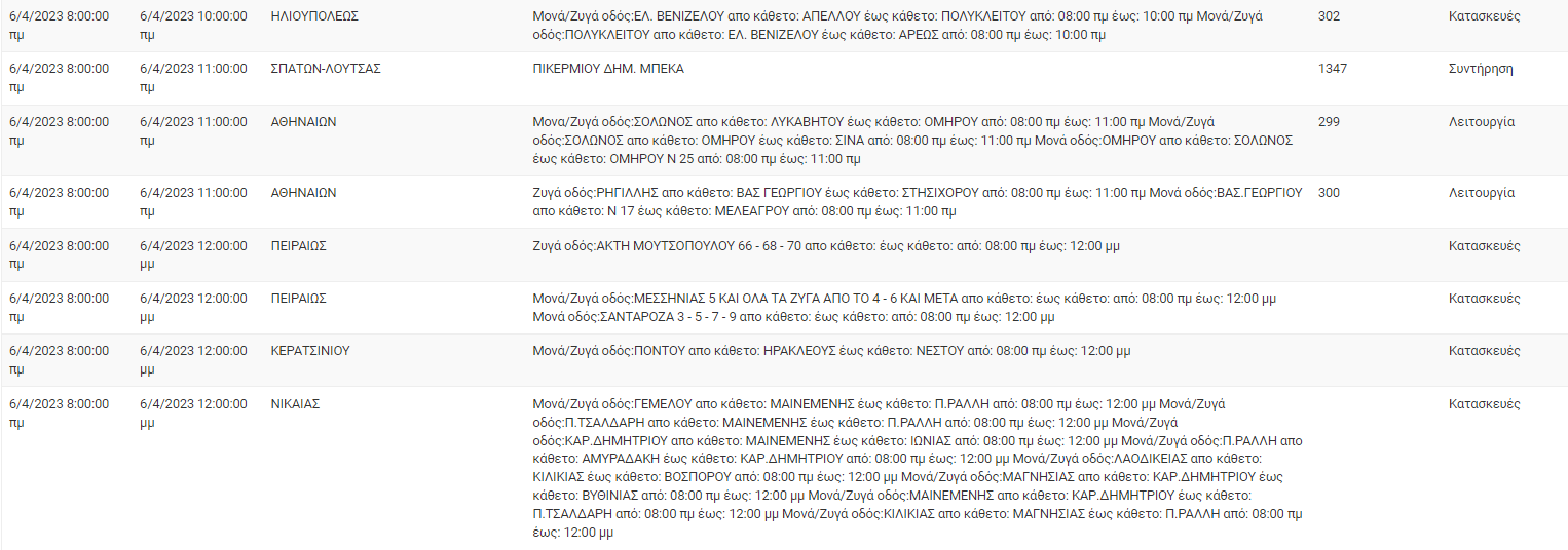Συγκεκριμένα, όπως αναφέρει ο ΔΕΔΔΗΕ θα υπάρξουν προγραμματισμένες διακοπές ρεύματος σε περιοχές της Ηλιούπολης, των Σπάτων, της Αθήνας, του Πειραιά, του Κερατσινίου, της Νίκαιας, του Αγ. Δημητρίου, της Καλλιθέας της Βούλας, του Υμηττού και των Μεγαρέων.