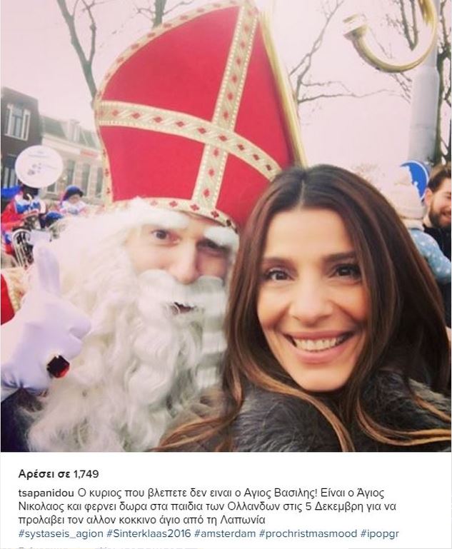 Κάνοντας τις βόλτες της έβγαλε μια selfie με έναν κύριο που είχε ντυθεί Άγιος Νικόλαος, με τη δημοφιλή παρουσιάστρια να εξηγεί ποιός ακριβώς είναι για τους Ολλανδούς στην ανάρτησή της στο instagram.