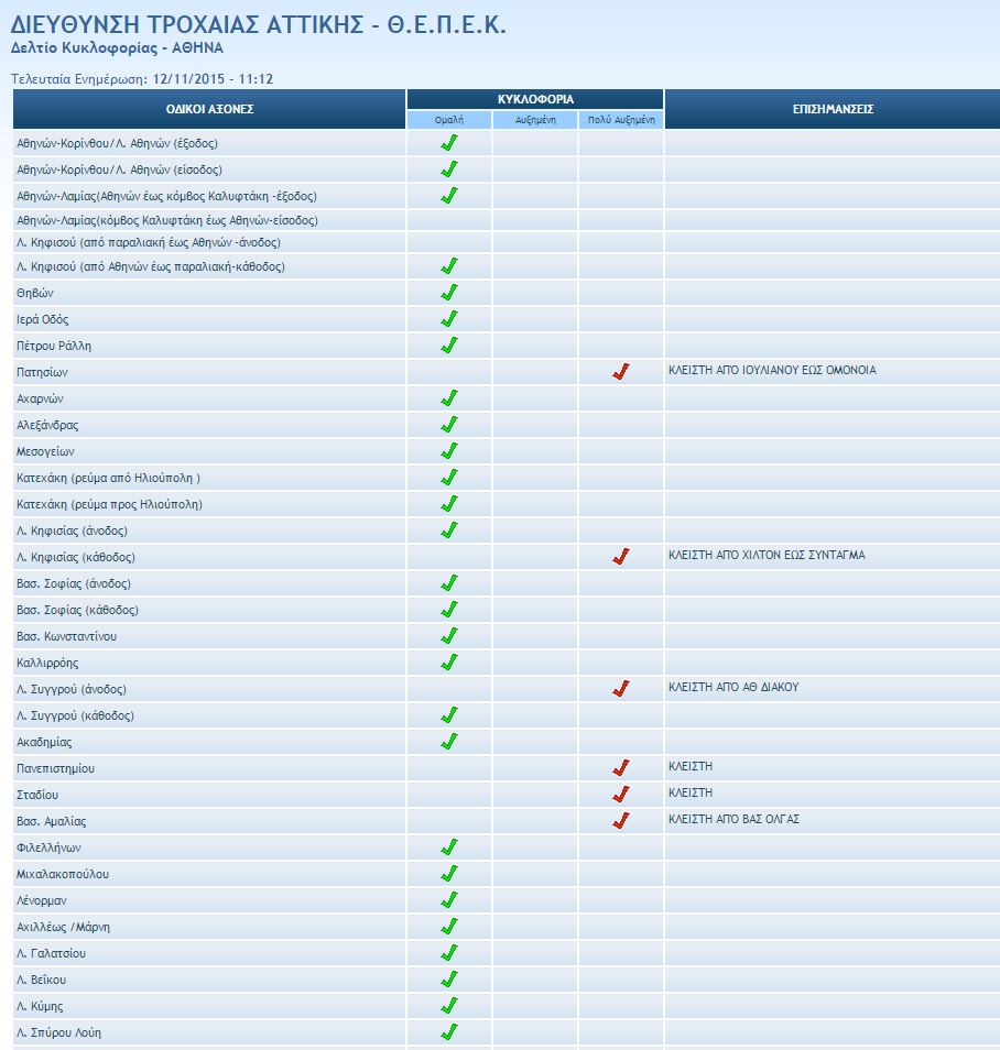 Κλειστές είναι αυτή την ώρα η Πατησίων, η κάθοδος της Κηφισίας, η άνοδος της Συγγρού, η Πανεπιστημίου, η Σταδίου, η Βασιλίσσης Σοφίας και η Βασιλίσσης Αμαλίας.