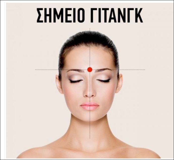 Το σημείο του τρίτου ματιού ή γιτάνγκ, βρίσκεται ανάμεσα στα φρύδια στο σημείο που η γέφυρα της μύτης περνάει στο μέτωπο. Αυτό το σημείο είναι υπεύθυνο και για την απομάκρυνση της κόπωσης των ματιών.