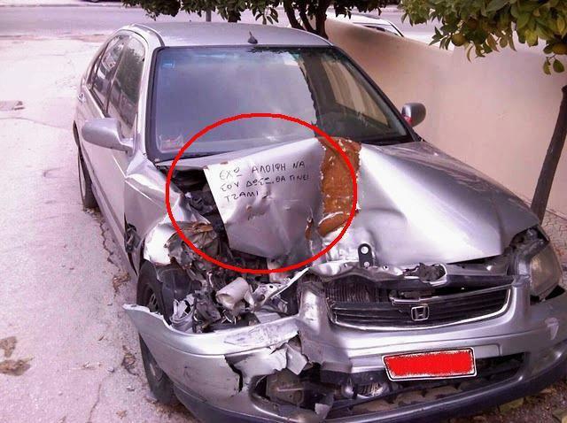Ο άνθρωπος τράκαρε και κάποιος είχε όρεξη για αστεία. Δείτε τι του έγραψε στη λαμαρίνα του αυτοκινήτου.