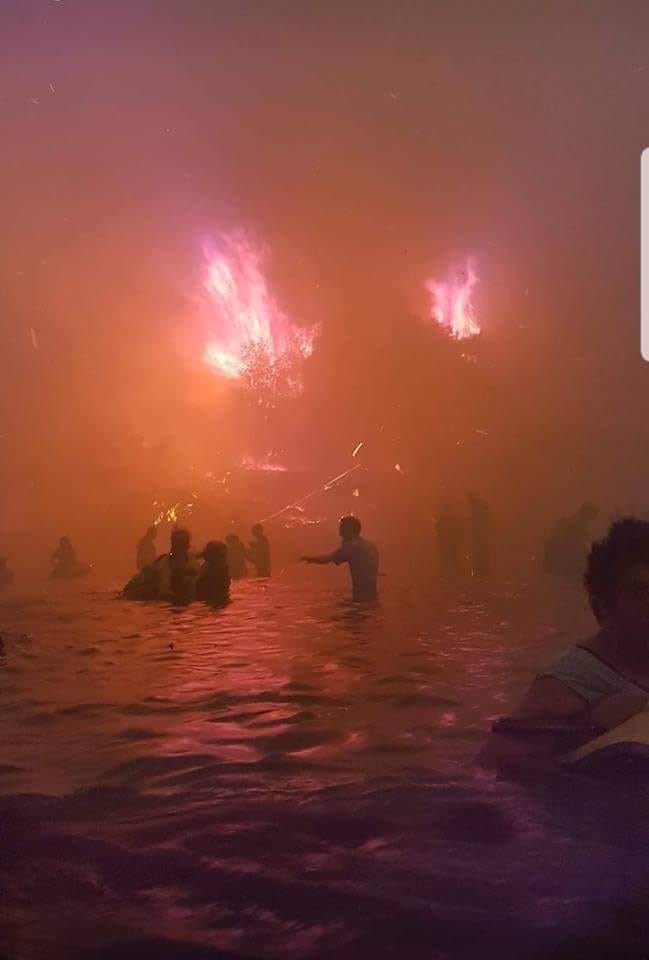 Κόλαση επί γης. Μόνο έτσι μπορεί κάποιος να χαρακτηρίσει τα όσα έζησαν όσοι ήρθαν αντιμέτωποι με τη πύρινη λαίλαπα, κοιτώντας τη φωτογραφία η οποία κάνει τον γύρο του διαδικτύου και σοκάρει. Μια φωτογραφία η οποία τραβήχτηκε τη στιγμή του πανικού, όπου ο κόσμος προσπαθούσε μέσα στη θάλασσα να σωθεί από τις φλόγες, κολυμπώντας όσο πιο μακρυά, με όσες δυνάμεις τους είχαν απομείνει…