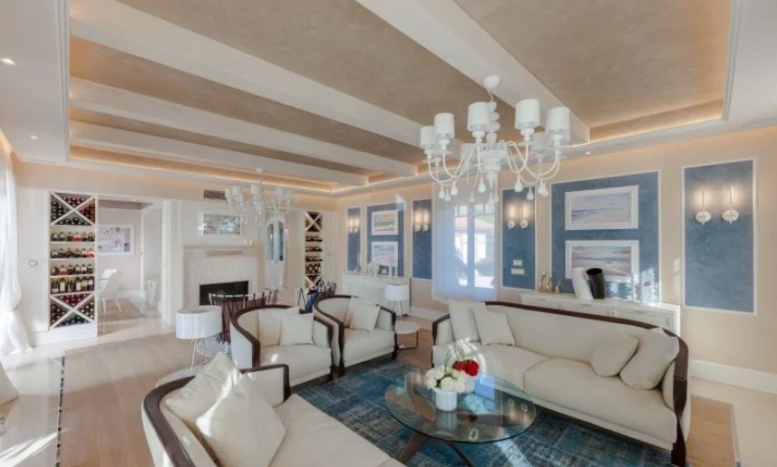 Η πολυτελής έπαυλη των 900 τετραγωνικών μέτρων που διαθέτει μεταξύ άλλων έξι υπνοδωμάτια, πανέμορφο κήπο, πισίνα, τζακούζι και πανοραμική θέα διατίθεται προς πώληση έναντι του ποσού των 10,5 εκατ. ευρώ.