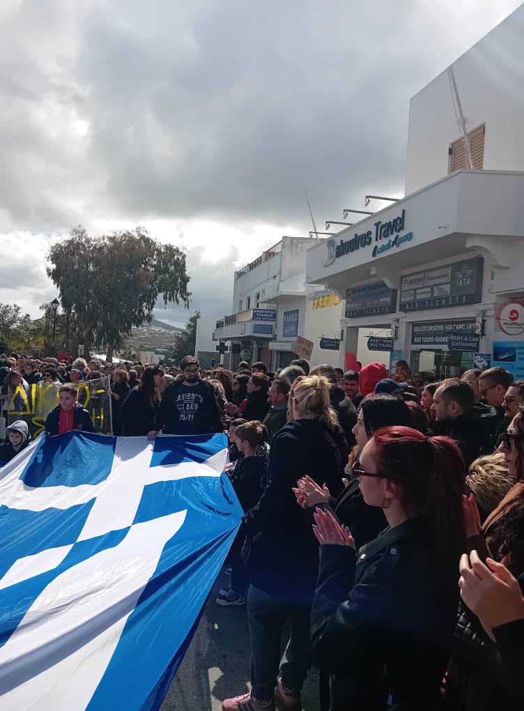 Η Σαντορίνη τιμά τη μνήμη των θυμάτων της τραγωδίας στα Τέμπη, με την τοπική κοινωνία να δίνει το δικό της «παρών». Φωτογραφία ενός αναγνώστη του enikos.gr, επιβεβαιώνει την ηχηρή παρουσία του κόσμου, στα πλαίσια των συλλαλητηρίων που λαμβάνουν χώρα σήμερα σε ολόκληρη την Ελλάδα, αλλά και στο εξωτερικό.