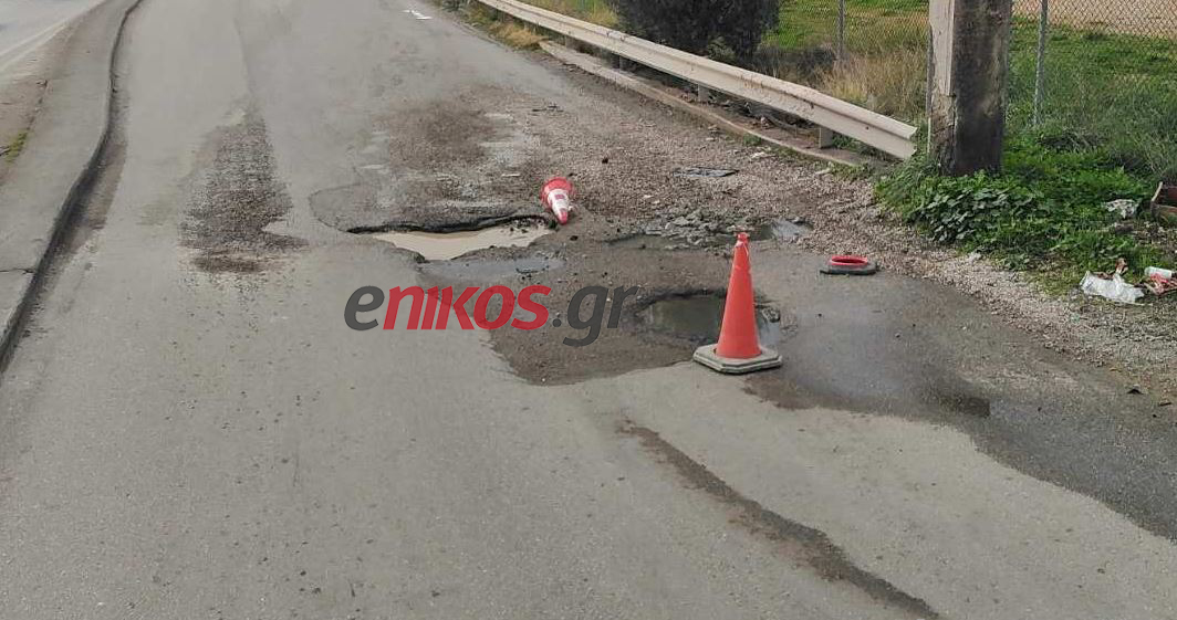 Όπως μπορείτε να δείτε, στον δρόμο ο οποίος είναι πολυσύχναστος, υπάρχουν ορισμένες τεράστιες τρύπες γεμάτες με νερό. Εκεί έχουν τοποθετηθεί κώνοι προκειμένου οι οδηγοί να τις αποφεύγουν, άγνωστο πώς, αφού καταλαμβάνουν σχεδόν ολόκληρο τον δρόμο.