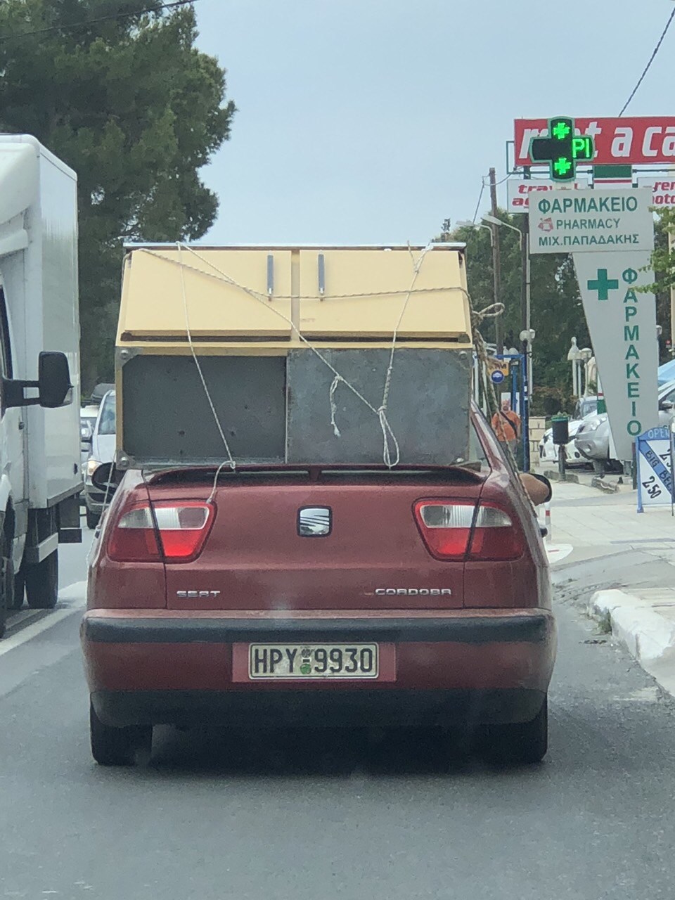 Πλέον τα έχουμε δει όλα στους ελληνικούς δρόμους. Ασυνείδητοι οδηγοί που φορτώνουν το αυτοκίνητό τους με ογκώδη αντικείμενα, αδιαφορώντας για τους πεζούς αλλά και τη σωματική ακεραιότητα των άλλων οδηγών. Όπως βλέπετε στη φωτογραφία που μας έστειλε αναγνώστης του enikos.gr από το Ρέθυμνο, ο συγκεκριμένος οδηγός φόρτωσε στο ΙΧ του ένα τεράστιο επαγγελματικό ψυγείο με πάγκο εργασίας, σαν κι αυτά που χρησιμοποιούν τα εστιατόρια. Το φορτίο είναι τόσο μεγάλο που το αυτοκίνητο φτάνει σχεδόν σε ύψος το… φορτηγό που περνάει από δίπλα του.