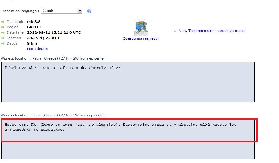 Όπως προκύπτει από τη σελίδα μαρτυριών του Ευρωμεσογειακού Σεισμολογικού Κέντρου, η σεισμική δόνηση 3,8 Ρίχτερ που σημειώθηκε στις 18:21, Βορειοανατολικά της Πάτρας, δεν έγινε ιδιαίτερα αισθητή. Διαβάστε τι γράφουν: