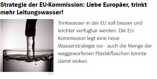 Η ποιότητα του νερού της βρύσης είναι ήδη υψηλή στις περισσότερα κράτη – μέλη της ΕΕ(μεταξύ των οποίων συμπεριλαμβάνεται και η Γερμανία).