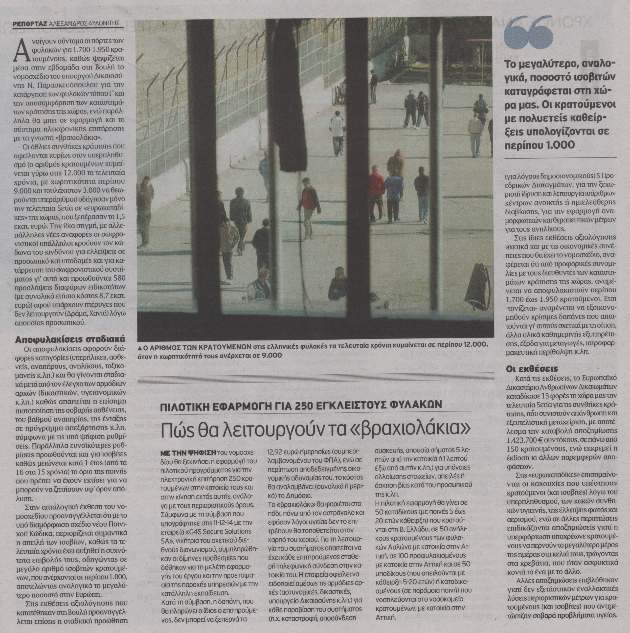 Ανοίγουν οι πόρτες των φυλακών για 1.700-1.950 κρατουμένους,καθώς ψηφίζεται μέσα στην εβδομάδα στη Βουλή το νομοσχέδιο του υπουργού Δικαιοσύνης Ν. Παρασκευόπουλου για την κατάργηση των φυλακών τύπου Γ’ και την αποσυμφόρηση των καταστημάτων της κράτησης της χώρας, ενώ παράλληλα θα μπει σε εφαρμογή και το σύστημα ηλεκτρονικής επιτήρησης με τα γνωστά «βραχιολάκια».