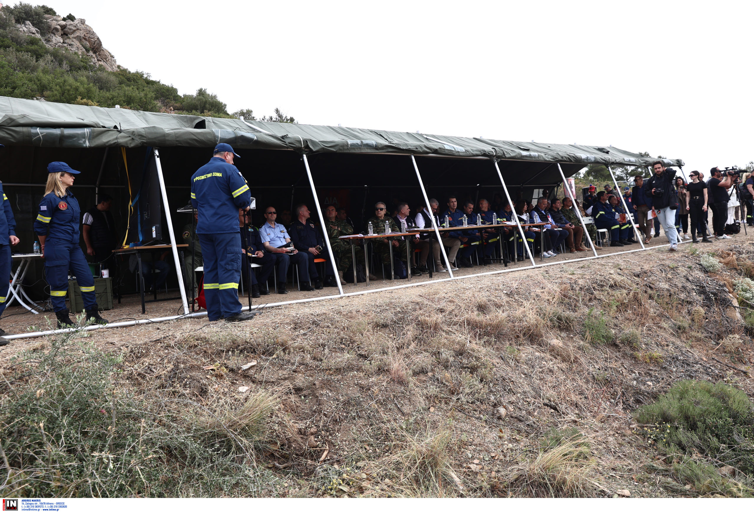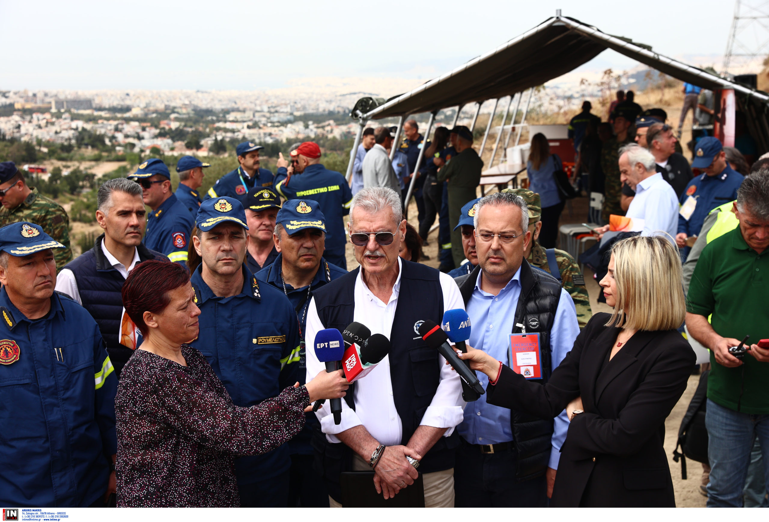 Δείτε φωτογραφίες από την άσκηση «Δια πυρός 2024» που έγινε στον Υμηττό, παρουσία του υφυπουργού Κλιματικής Κρίσης, Ευάγγελου Τουρνά: