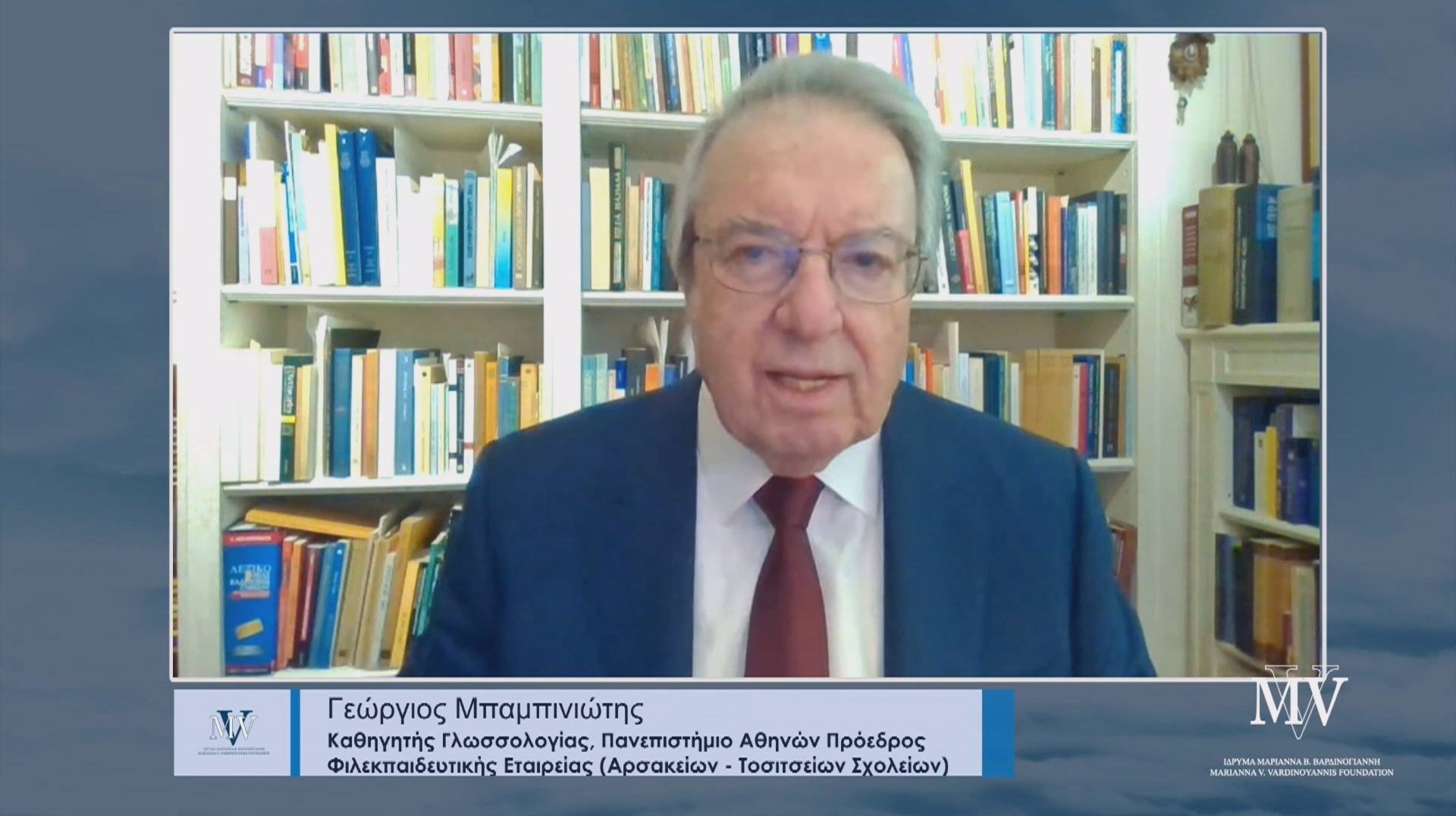 Στο βιντεοσκοπημένο του μήνυμα ο Καθηγητής Γεώργιος Μπαμπινιώτης ανέφερε: