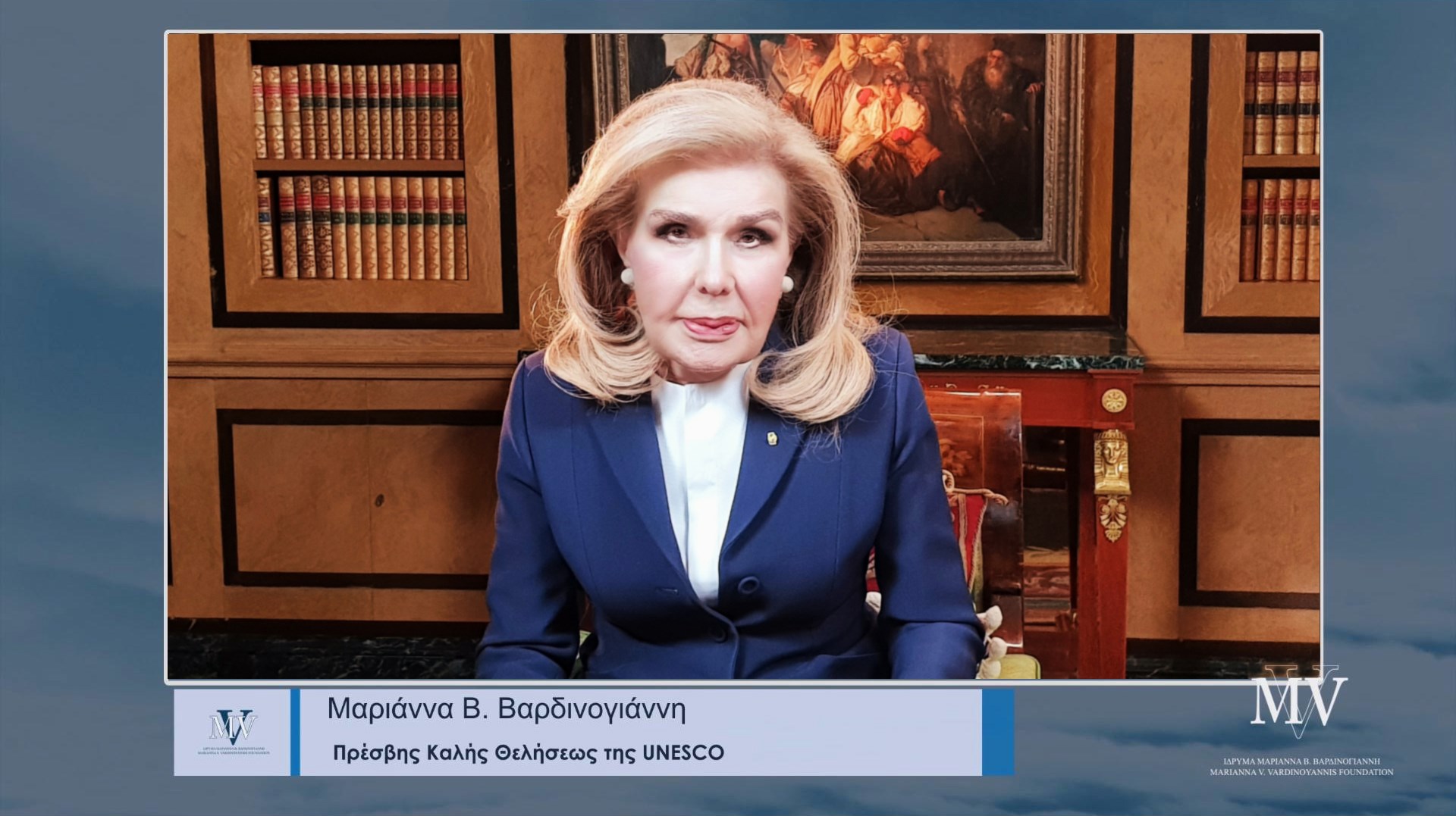 Στην ομιλία της η κα Μαριάννα Β. Βαρδινογιάννη, βαθύτατα συγκινημένη, ανέφερε ανάμεσα σε άλλα: