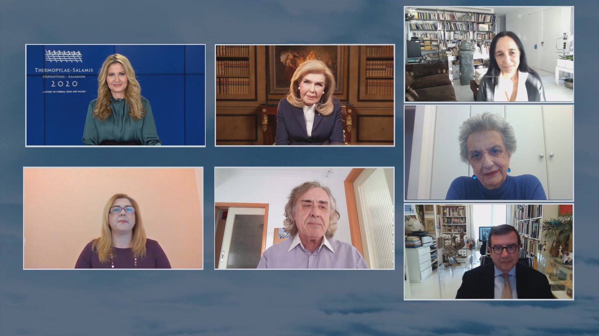«Θερμά σας ευχαριστώ, αγαπητή κυρία Βαρδινογιάννη, θερμά συγχαρητήρια που για μια ακόμα φορά σταθήκατε αντάξια των μεγάλων ευθυνών απέναντι στη ζωή και τον πολιτισμό μας. Και με όλες σας τις εμπνευσμένες σας δράσεις υπηρετήσατε την οικουμενική διάσταση του τεράστιου θέματος «Θερμοπύλες Σαλαμίνα 2020». Επίσης συστρατευσατε τα ελληνόπουλα από όλη τη χώρα για ακόμα μια χρονιά μαζί με την Παιδική Πινακοθήκη Ελλάδος για τον καθιερωμένο παιδικό διαγωνισμό ζωγραφικής. Οι μικροί μας ζωγράφοι αποκαλύπτουν την δική τους ιστορία για τον αξεπέραστο ηρωισμό, τη γενναιότητα και την αυταπάρνηση όλων όσων αγωνίστηκαν για την ελευθερία και την αξιοπρέπεια. Έτσι σε όλα τα παιδιά αξίζει ένα μεγάλο «Εύγε» για την καλλιτεχνική τους ευμάρεια και την προσπάθειά τους να αποτυπώσουν την ιδέα του ωραίου μέσα από την ιστορία μας.