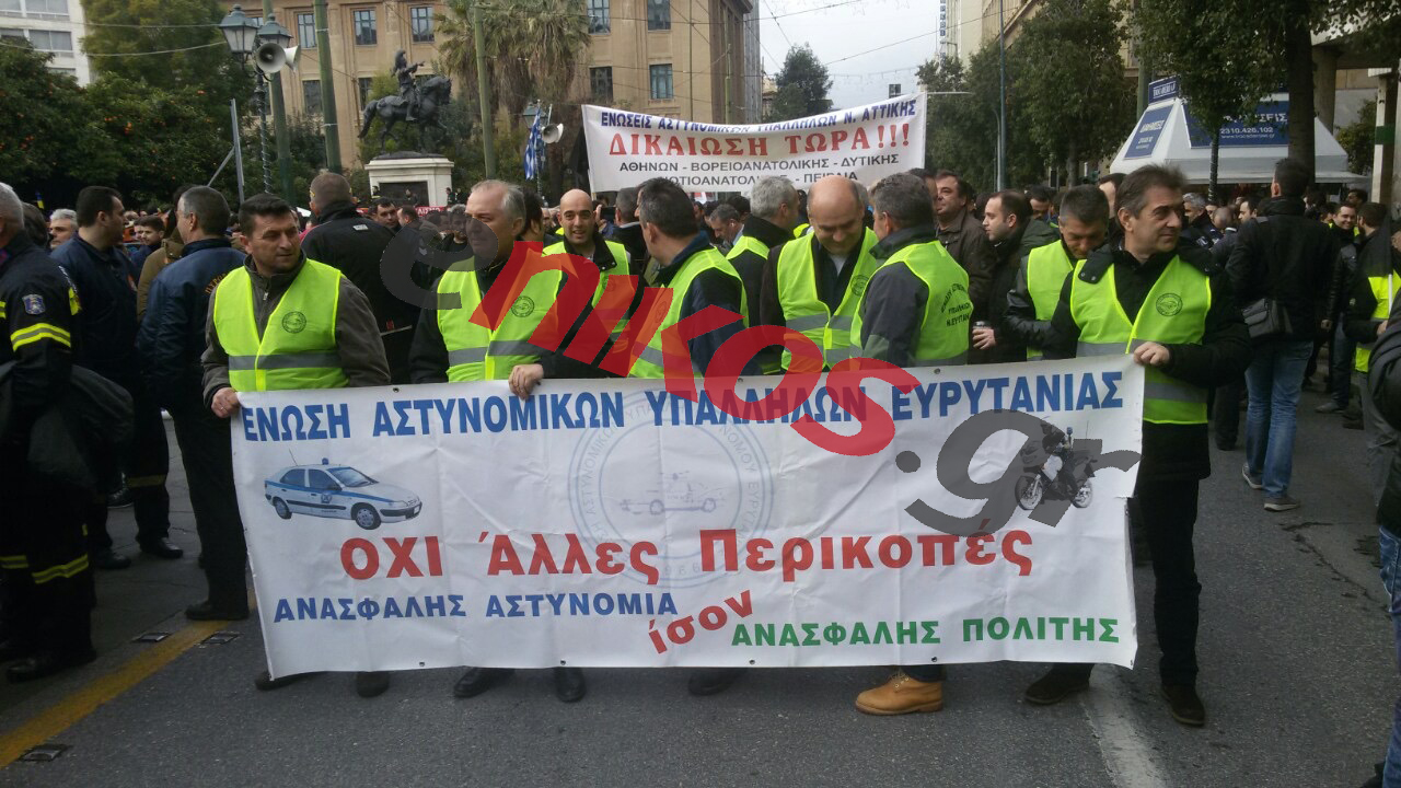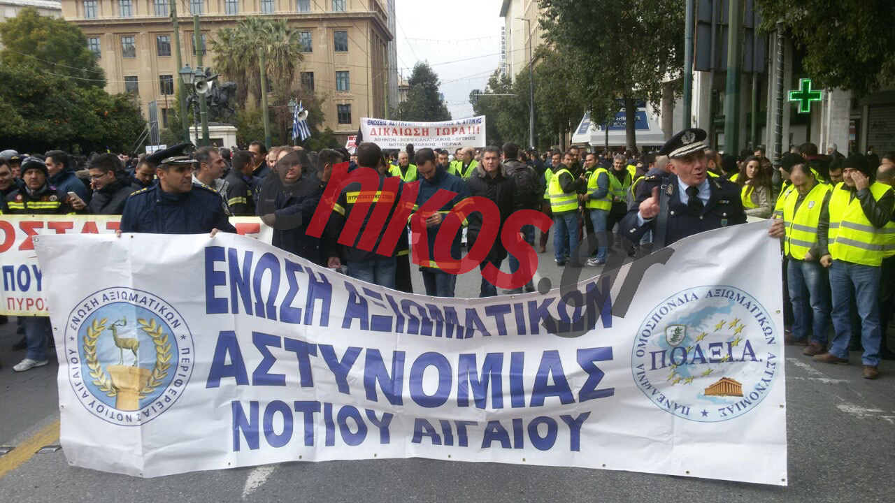 Σε εξέλιξη βρίσκεται η πορεία που πραγματοποιούν εργαζόμενοι στα Σώματα Ασφαλείας.