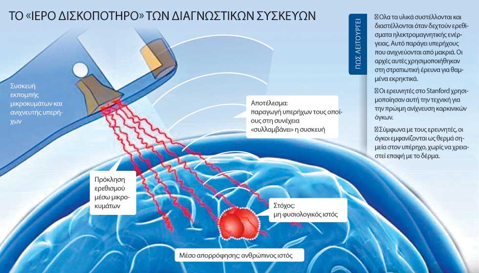 Εμπνεόμενοι απ’ αυτές τις στρατιωτικές έρευνες, οι ερευνητές του Στάνφορντ συνειδητοποίησαν ότι αυτή η τεχνική μπορεί να χρησιμοποιηθεί και για την ανίχνευση όγκων στα πρώιμα στάδια του καρκίνου, καθώς τα αιμοφόρα αγγεία τρέφουν έναν αυξανόμενο όγκο και θερμαίνουν σε διαφορετικό ρυθμό από τον περιβάλλοντα ιστό. Οι ερευνητές λένε ότι αυτό θα προκαλέσει όγκους να εμφανίζονται ως hotspots σε υπέρηχο, χωρίς να χρειάζεται να υπάρχει επαφή με το δέρμα.