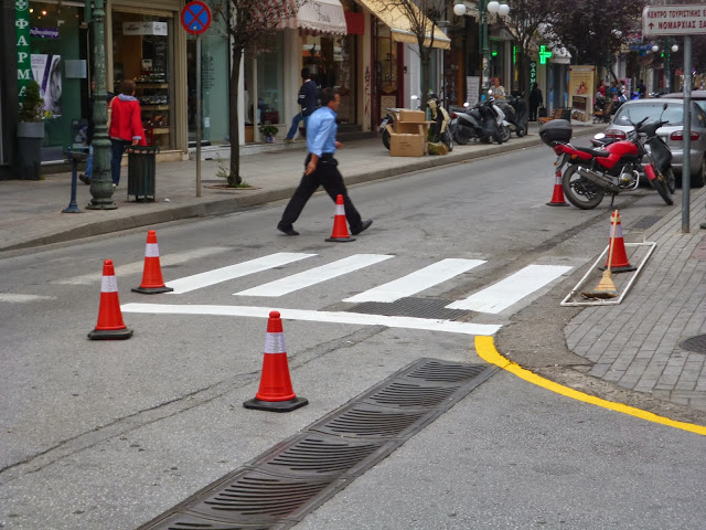 Υπάλληλοι των τεχνικών υπηρεσιών πραγματοποιούν καθημερινά επιδρομές στην πόλη, εντοπίζοντας τις διαβάσεις των πεζών, που, λόγω συχνής χρήσης, έχουν ξεθωριάσει και είναι αμυδρά πλέον ορατές, βάφοντάς τες, ώστε να είναι εμφανείς τόσο στους διερχόμενους οδηγούς όσο και στους πολίτες.