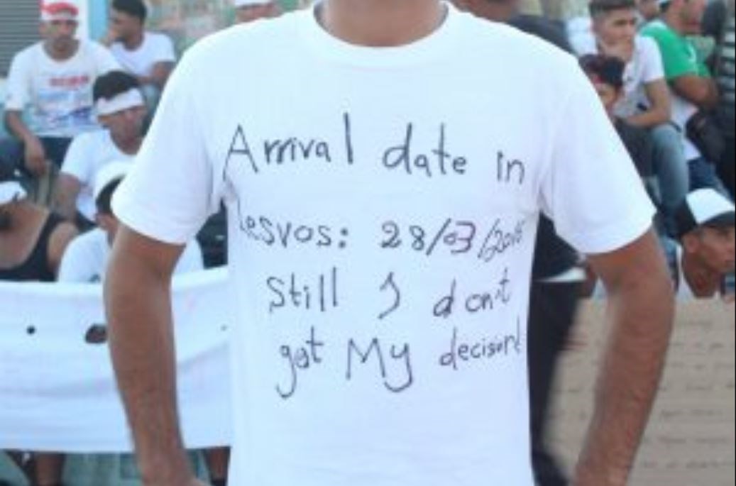 Φορώντας μπλούζες που ανέγραφαν την ημερομηνία αφίξεώς τους στο νησί και το διάστημα της παραμονής τους και με σύνθημα «το Αφγανιστάν δεν είναι ασφαλής χώρα, οι απελάσεις πρέπει να σταματήσουν» ζήτησαν την έγκριση της αίτησης ασύλου.