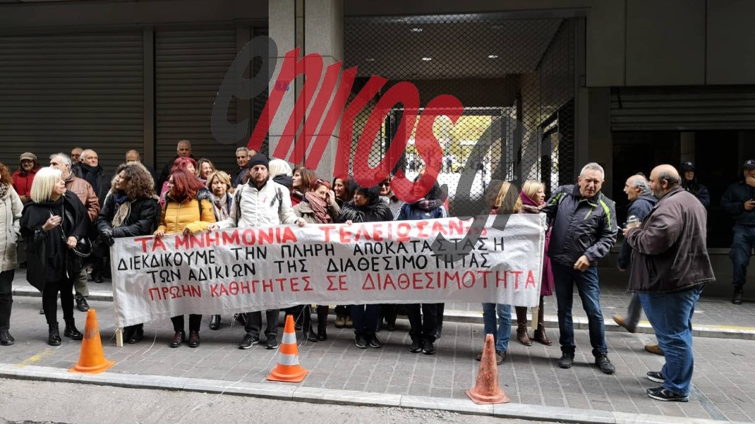 Συγκέντρωση διαμαρτυρίας πραγματοποιούν αυτή την ώρα έξω από το υπουργείο Οικονομικών εκπαιδευτικοί που είχαν τεθεί σε διαθεσιμότητα από το 2013 έως το 2015.