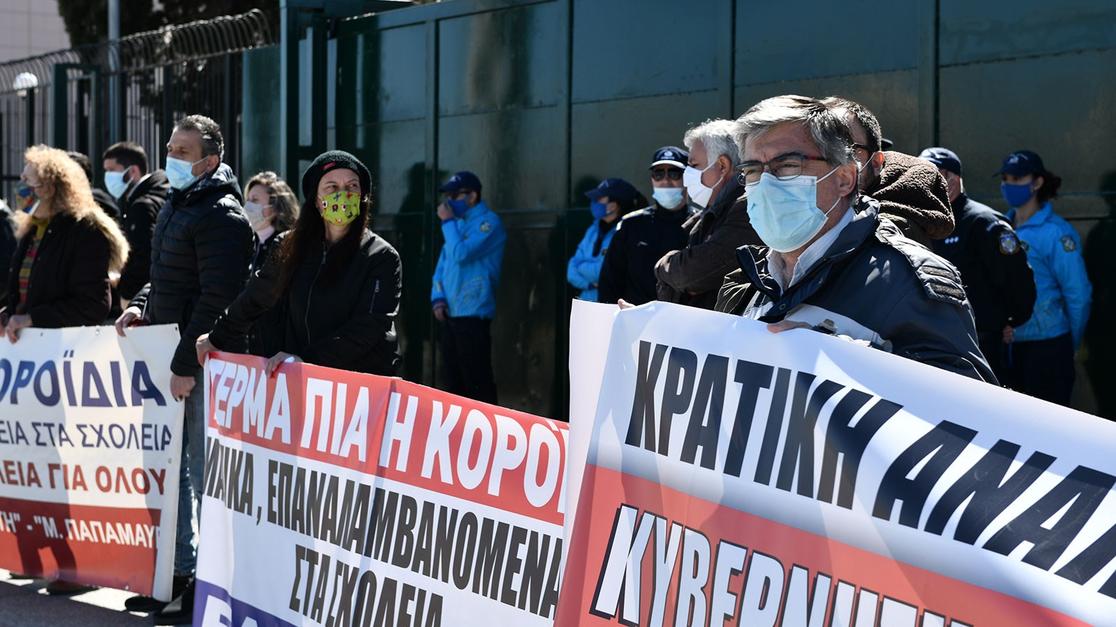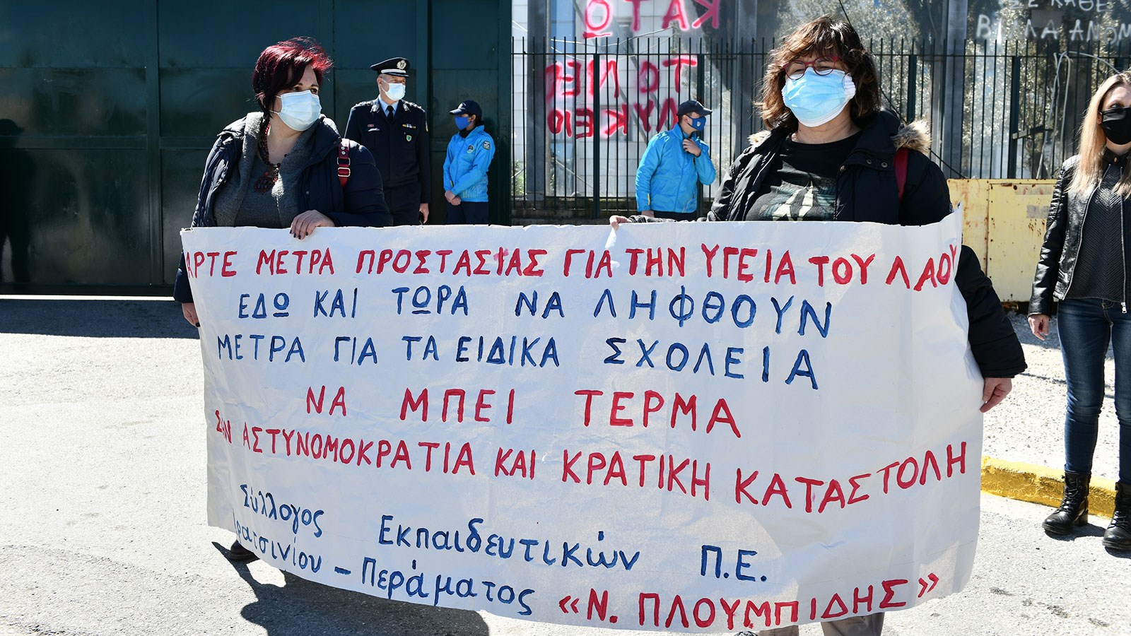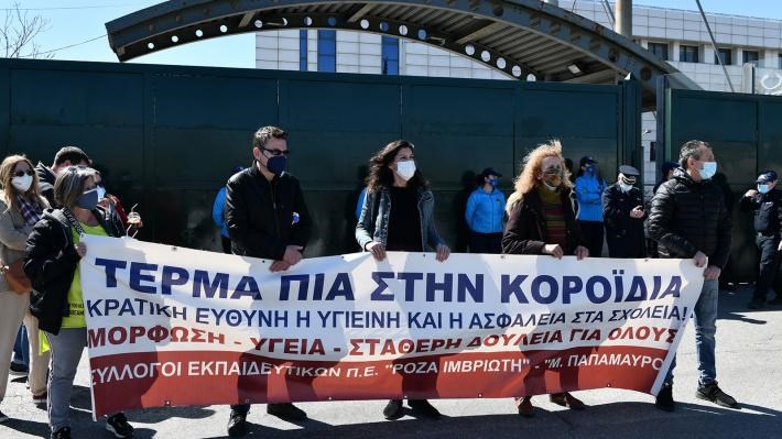 Σωματεία εκπαιδευτικών πραγματοποίησαν το μεσημέρι της Πέμπτης διαμαρτυρία στο υπουργείο Παιδείας, στο πλαίσιο της σημερινής απεργιακής κινητοποίησης για μέτρα προστασίας στα Ειδικά Σχολεία.