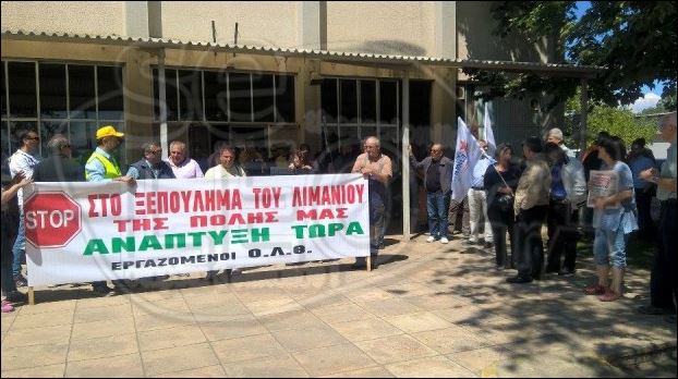 Συγκέντρωση διαμαρτυρίας πραγματοποιούν αυτή την ώρα, στον Οίκο του Λιμενεργάτη, μέσα στο Λιμάνι της Θεσσαλονίκης, οι εργαζόμενοι του ΟΛΘ, με αφορμή την επίσκεψη του Πρωθυπουργού για τα εγκαίνια των εργασιών του ελληνικού τμήματος του αγωγού TAP.