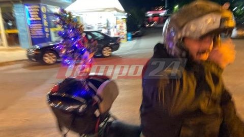 Όταν έχεις μαγαζί βάζεις το δέντρο σε περίοπτη θέση… όταν όμως έχεις μηχανάκι; Το βάζεις στη μπαγκαζιέρα απαντά ο Πατρινός διανομέας που εδώ και μερικές ημέρες κυκλοφορεί στην πόλη με στολισμένο μηχανάκι.