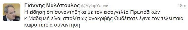 Ο Γιάννης Μυλόπουλος έγραψε στο twitter: