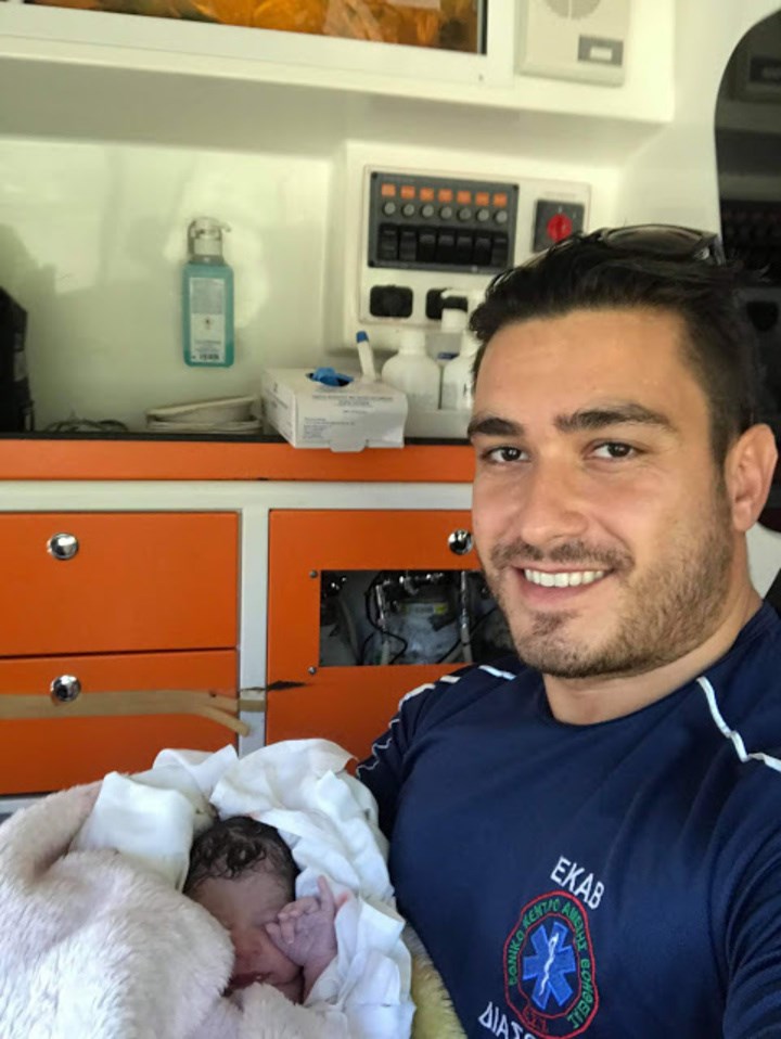Όμως, μόλις έφτασαν στο σπίτι οι διασώστες του ΕΚΑΒ Παναγιώτης Ξουρής και Δημήτρης Ζουρούδης, αντιλήφθηκαν ότι ο τοκετός βρισκόταν ήδη σε εξέλιξη και έτσι, αφού δεν μπορούσαν να μεταφέρουν τη γυναίκα στο νοσοκομείο, πήραν την απόφαση να την βοηθήσουν να γεννήσει στο σπίτι της.