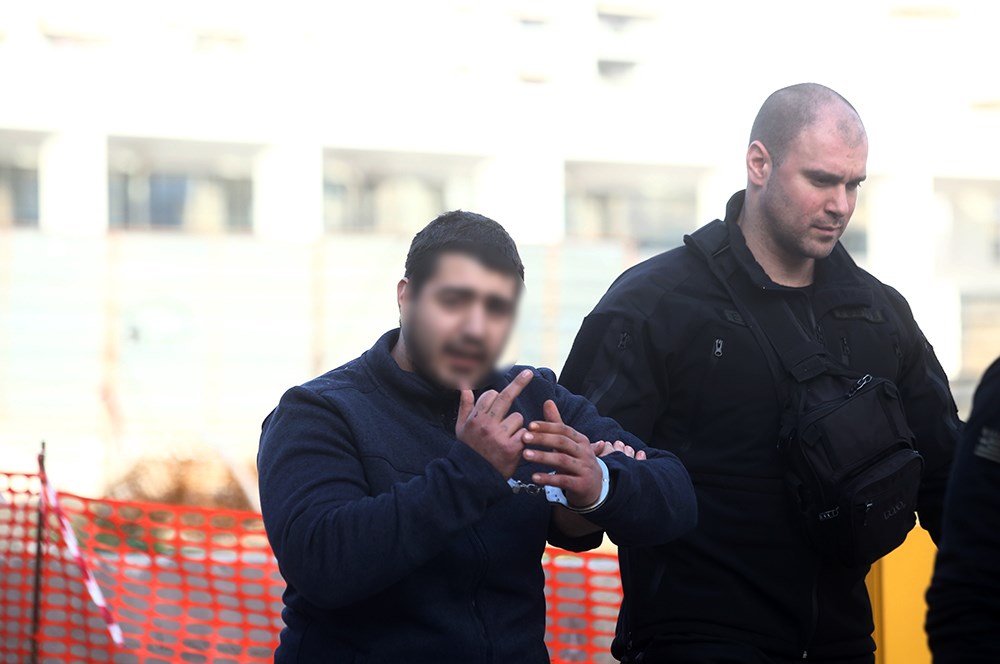 Κατά την μεταγωγή τους στο δικαστήριο ο Έλληνας κατηγορούμενος ύψωσε το μεσαίο του δάχτυλο και κοίταξε με προκλητικό τρόπο τους δημοσιογράφους αλλά και όσους είχαν συγκεντρωθεί έξω από το δικαστήριο για την έναρξη της πολύκροτης δίκης για τη δολοφονία της Ελένης Τοπαλούδη.