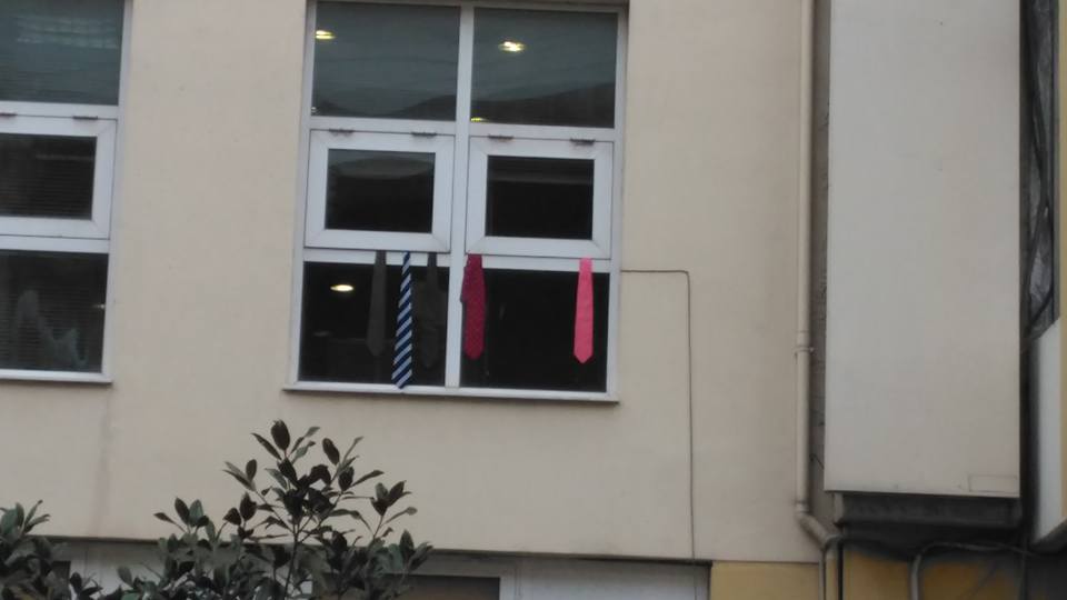 Ο δικηγορικός σύλλογος αποφάσισε τη σημερινή κίνηση διαμαρτυρίας, στο πλαίσιο των κινητοποιήσεων που έχει ξεκινήσει από τις αρχές του χρόνου, ενάντια στο ασφαλιστικό νομοσχέδιο. Παράλληλα, προχωρώντας σε μία ακόμη συμβολική κίνηση, κρέμασαν τις γραβάτες τους απέναντι ακριβώς από το δικαστικό μέγαρο.
