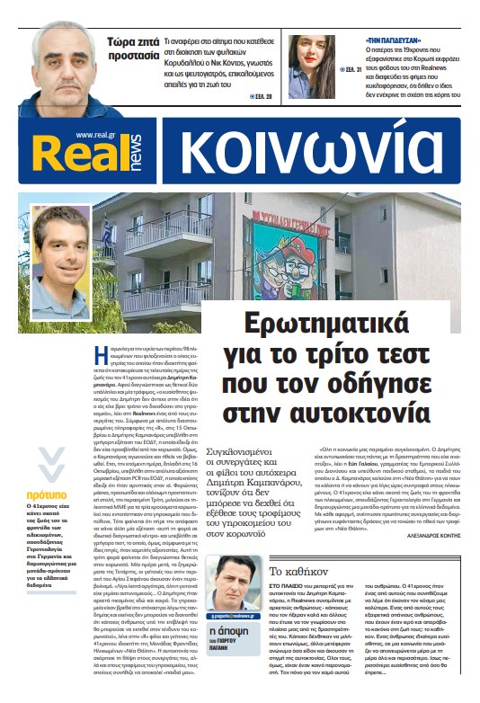 Αφού διαγνώστηκαν ως θετικοί δύο υπάλληλοι και µία τρόφιµος, «ο ευαίσθητος ψυχισµός του ∆ηµήτρη δεν άντεχε στην ιδέα ότι ο ιός είχε βρει τρόπο να διεισδύσει στο γηροκοµείο», λέει στη Realnews ένας από τους συνεργάτες του. Σύµφωνα µε απόλυτα διασταυρωµένες πληροφορίες της «R», στις 15 Οκτωβρίου ο ∆ηµήτρης Καµπανάρος υπεβλήθη στη γρήγορη εξέταση του ΕΟ∆Υ, η οποία έδειξε ότι δεν είχε προσβληθεί από τον κορωνοϊό. Οµως, ο Καµπανάρος αγωνιούσε και ήθελε να βεβαιωθεί. Ετσι, την επόµενη ηµέρα, δηλαδή στις 16 Οκτωβρίου, υπεβλήθη στην απόλυτα αξιόπιστη µοριακή εξέταση PCR του ΕΟ∆Υ, η οποία επίσης έδειξε ότι ήταν αρνητικός στον ιό. Φορώντας µάσκα, προσωπίδα και ολόσωµη προστατευτική στολή, την περασµένη Τρίτη, µιλούσε σε τηλεοπτικά ΜΜΕ για τα τρία κρούσµατα κορωνοϊού που εντοπίστηκαν στο γηροκοµείο που διηύθυνε. Τότε φαίνεται ότι πήρε την απόφαση να κάνει άλλη µία εξέταση -αυτή τη φορά σε ιδιωτικό διαγνωστικό κέντρο- και υπεβλήθη σε γρήγορο τεστ, το οποίο, όµως, σύµφωνα µε τις ίδιες πηγές, ήταν χαµηλής αξιοπιστίας. Αυτή τη τρίτη φορά φαίνεται ότι διαγνώστηκε θετικός στον κορωνοϊό. Μία ηµέρα µετά, τα ξηµερώµατα της Τετάρτης, οι γείτονές του στην περιοχή του Αγίου Στεφάνου άκουσαν έναν πυροβολισµό. «Λίγα λεπτά αργότερα, όλη η γειτονιά είχε γεµίσει αστυνοµικούς… Ο ∆ηµήτρης ήταν αρκετά πιεσµένος εδώ και καιρό. Τα γηροκοµεία είχαν βρεθεί στο στόχαστρο λόγω της πανδηµίας και εκείνος δεν µπορούσε να διανοηθεί ότι κάποιος άνθρωπος υπό την επίβλεψή του θα µπορούσε να εκτεθεί στον κίνδυνο του κορωνοϊού», λένε στην «R» φίλοι και γείτονες του 41χρονου ιδιοκτήτη της Μονάδας Φροντίδας Ηλικιωµένων «Νέα Θάλπη». Η αυτοκτονία του σκόρπισε τη θλίψη στους συνεργάτες του, αλλά και στους τροφίµους του γηροκοµείου, τους οποίους συνήθιζε να αποκαλεί «παιδιά µου».
