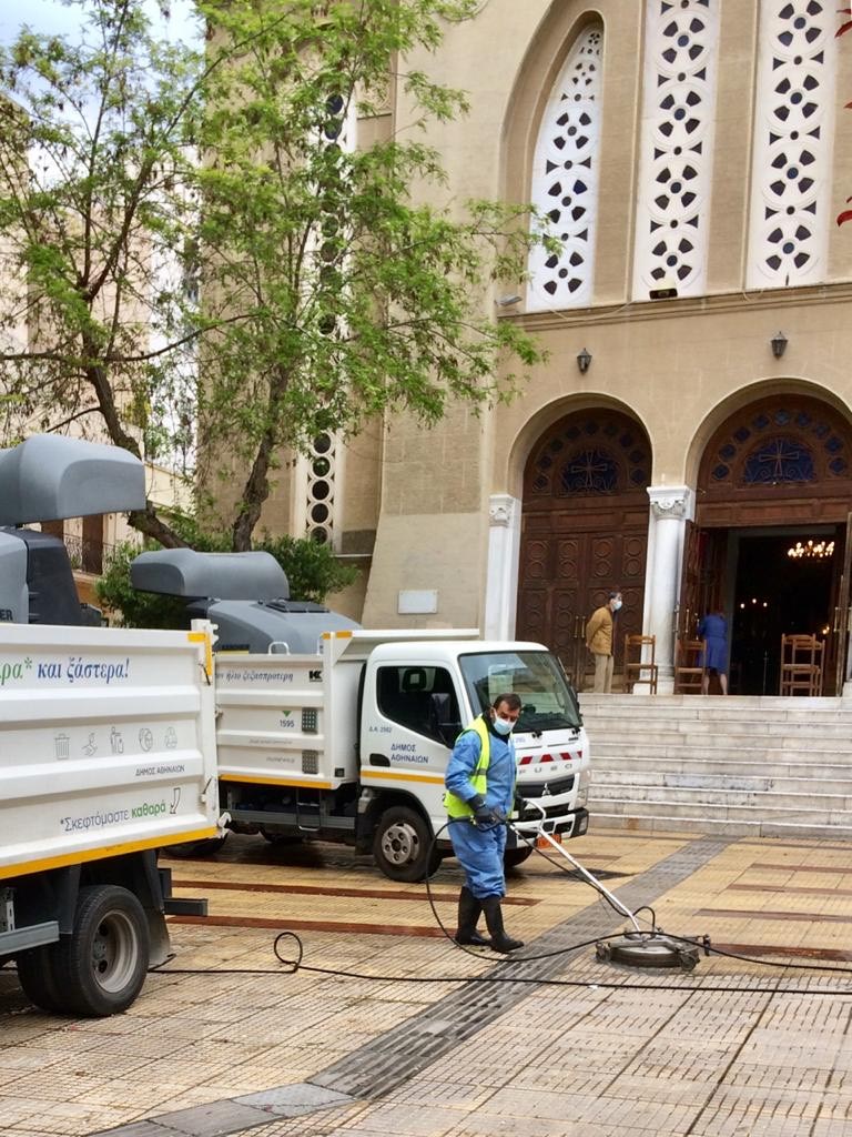 Στην περιοχή της Κυψέλης, όπου η πλατεία Γεωργίου είχε μετατραπεί τις προηγούμενες εβδομάδες αρκετές φορές σε σκουπιδότοπο λόγω των υπαίθριων πάρτι, επικεντρώθηκε η κυριακάτικη επιχείρηση καθαριότητας και απολύμανσης του Δήμου Αθηναίων. Οι εργαζόμενοι της Διεύθυνσης Καθαριότητας και Ανακύκλωσης, χρησιμοποιώντας περίπου 20 πλυστικά, σάρωθρα και υδροφόρες, ξεκίνησαν από νωρίς το πρωί να «σαρώνουν» όλα τα πολυσύχναστα σημεία της περιοχής.