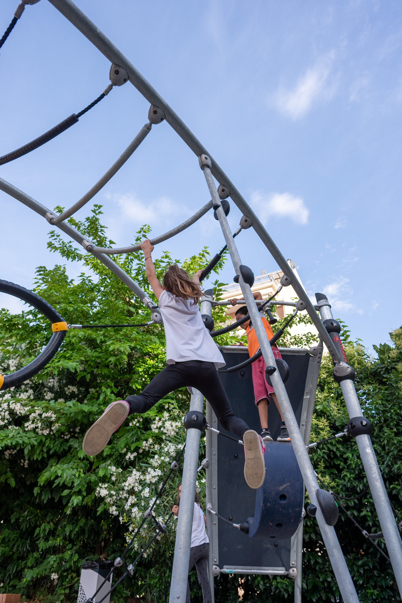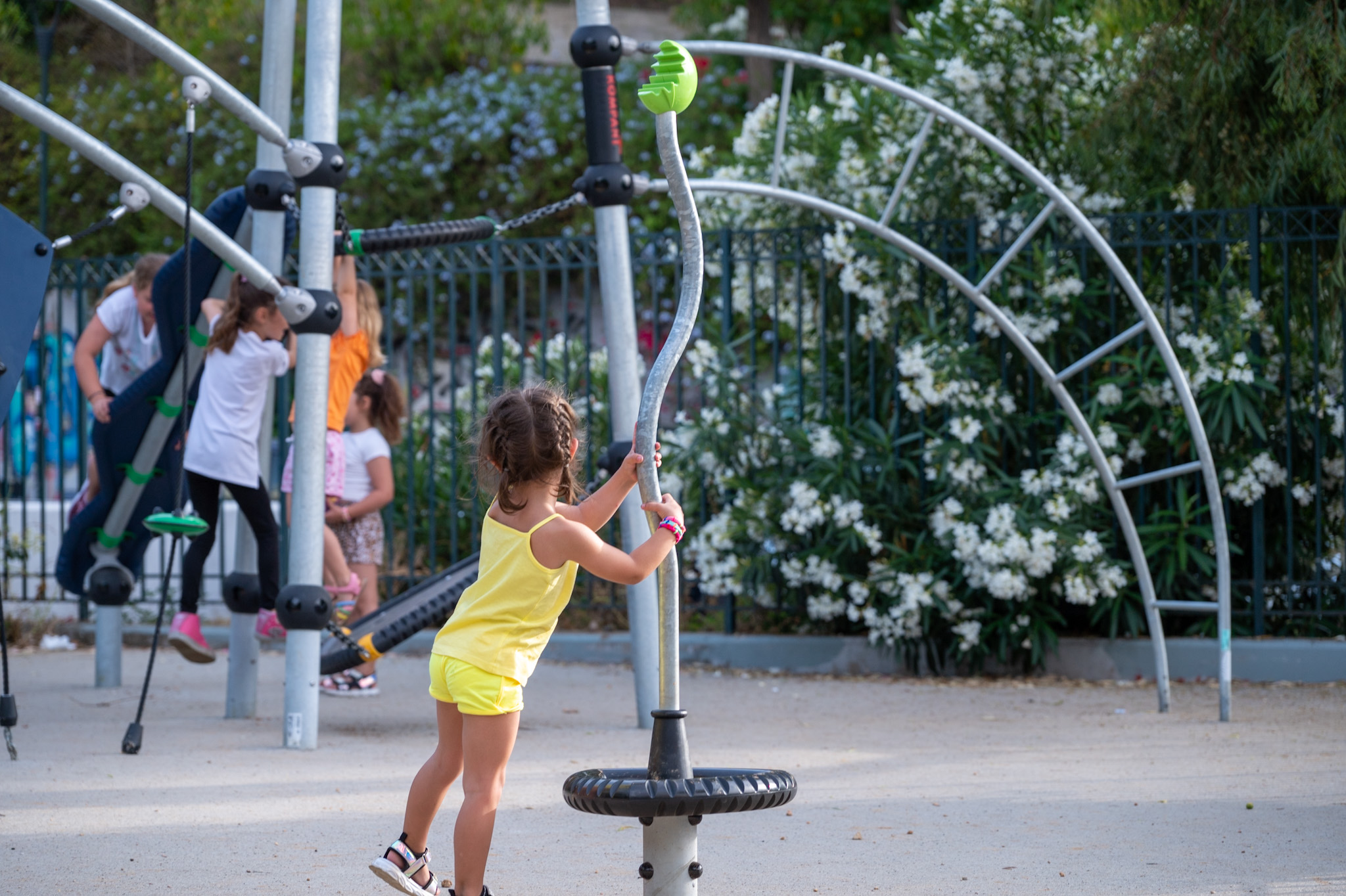Η παιδική χαρά προσφέρει μια ευρεία γκάμα παιχνιδιών για τα παιδιά ώστε να απασχοληθούν δημιουργικά καθ’ όλη την διάρκεια της ημέρας. Επιφάνειες με διαδραστικά εξαρτήματατριθέσια τραμπάλα με επιφάνεια ισορροπίαςατομικό αναστροφέα, πολυλειτουργική σύνθετη κατασκευή με τσουλήθρες και στύλο πυροσβέστη, καθώς και ειδικά όργανα για αναρρίχηση.