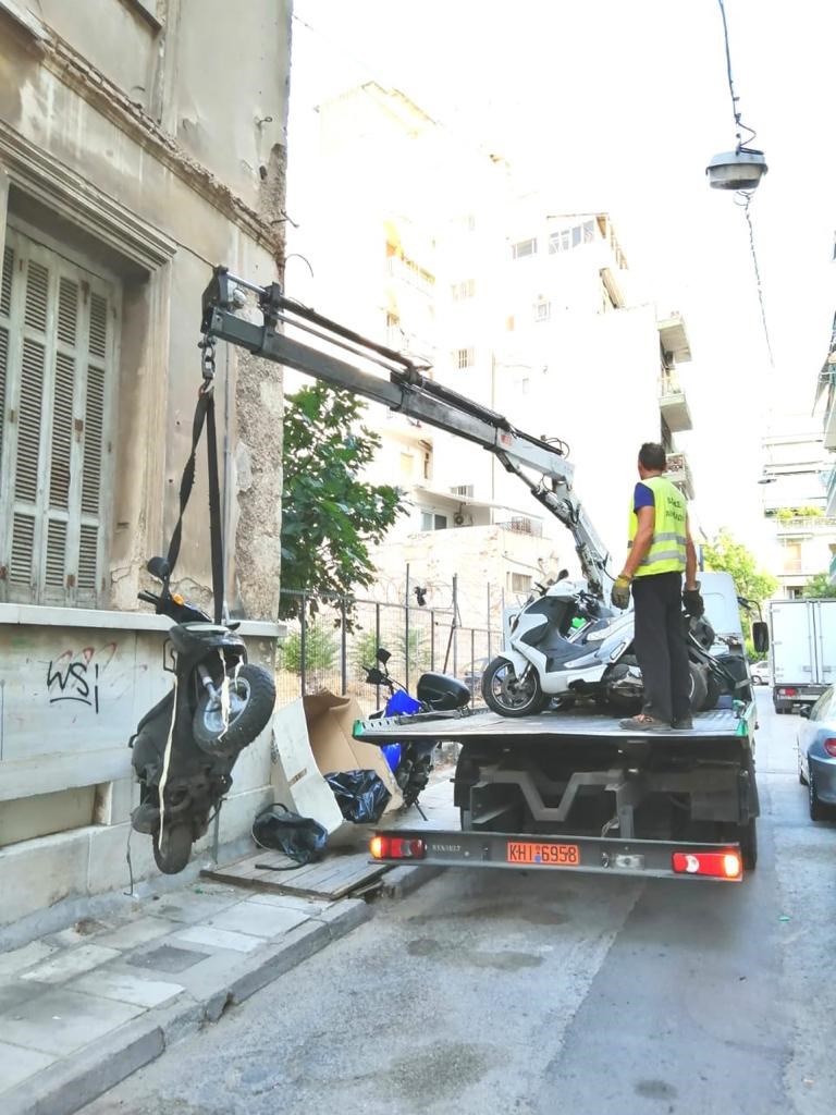 Σε καθημερινή βάση, επτά μέρες την εβδομάδα, τα συνεργεία του Δήμου Αθηναίων επιχειρούν σε όλες τις Δημοτικές Κοινότητες ώστε τα εγκαταλελειμμένα οχήματα να περιοριστούν στο ελάχιστο στην πόλη. Από τον Σεπτέμβριο του 2019 έχουν απομακρυνθεί από τις γειτονιές της Αθήνας 1.194 δίκυκλα και 1.126 αυτοκίνητα, δηλαδή συνολικά 2.320 οχήματα, δίνοντας σημαντική «ανάσα» στις γειτονιές και το κέντρο της Αθήνας τόσο για περπάτημα στα πεζοδρόμια όσο και με θέσεις στάθμευσης που δημιουργούνται.
