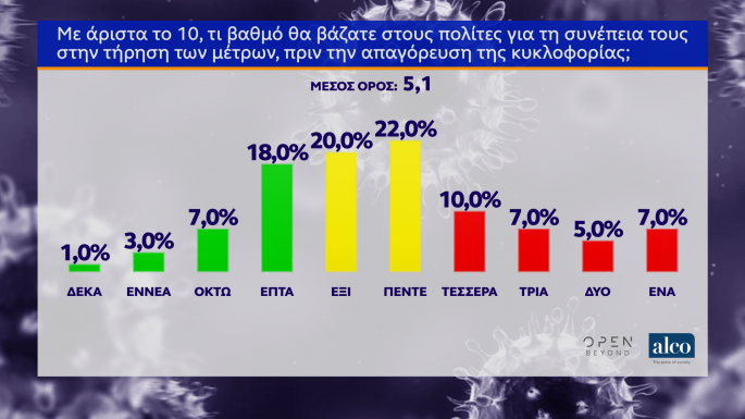 Συνολικά, οι πολίτες βαθμολογούν θετικά το κράτος, αλλά όχι και τόσο θετικά τη συνέπεια που επιδεικνύουν οι πολίτες όσον αφορά στην τήρηση των μέτρων.