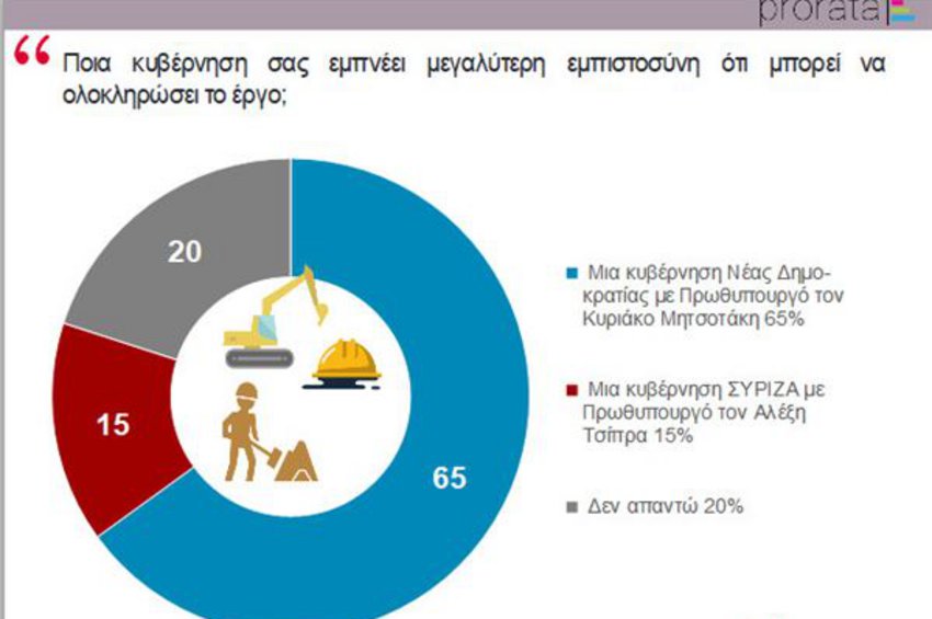 -Δηλώνουν ότι για την ολοκλήρωση του έργου τους εμπνέει μεγαλύτερη εμπιστοσύνη μια κυβέρνηση ΝΔ με πρωθυπουργό Μητσοτάκη (65%) παρά μια κυβέρνηση ΣΥΡΙΖΑ με πρωθυπουργό Τσίπρα (15%).