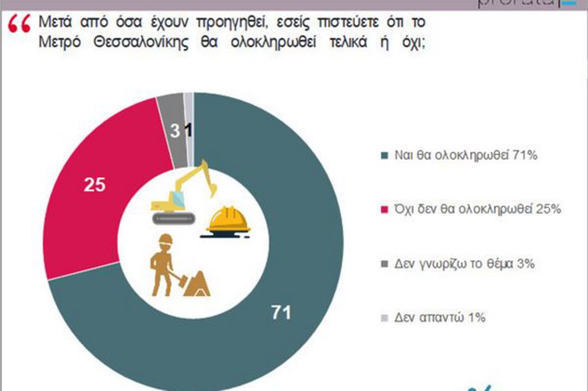 Είναι επίσης εντυπωσιακή η αισιοδοξία που εκφράζουν οι πολίτες στη συγκεκριμένη έρευνα, καθώς παρά τα όσα έχουν προηγηθεί δηλώνουν ότι είναι αισιόδοξοι ότι θα ολοκληρωθεί το έργο (σε ποσοστό 71%, έναντι 25% που δηλώνει ότι δεν θα ολοκληρωθεί).