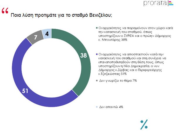 Το 51% τάσσεται υπέρ της λύσης απόσπασης και επανατοποθέτησης των αρχαιοτήτων που προωθεί η σημερινή κυβέρνηση, αλλά και οι παραγωγικοί φορείς, ο περιφερειάρχης Κεντρικής Μακεδονίας και ο νέος δήμαρχος, Κωνσταντίνος Ζέρβας, έναντι 38% που θα προτιμούσε οι αρχαιότητες να παραμείνουν στο χώρο κατά την κατασκευή του σταθμού, όπως υποστηρίζει ο ΣΥΡΙΖΑ και ο πρώην δήμαρχος, Γιάννης Μπουτάρης. Είναι αξιοσημείωτο ότι, αν και το θέμα είναι σύνθετο και πιο τεχνικής φύσεως, μόλις το 7% δηλώνει ότι δεν το γνωρίζει και άλλο ένα 4% δεν απαντά. Γεγονός που σημαίνει ότι έχουν παγιωθεί απόψεις και προφανώς δύσκολα θα αλλάξουν θέσεις…