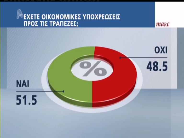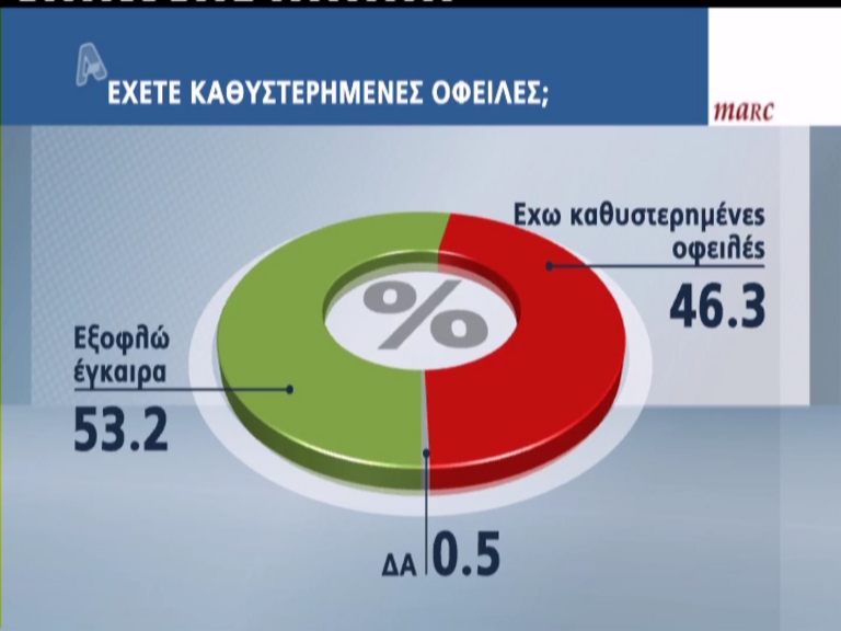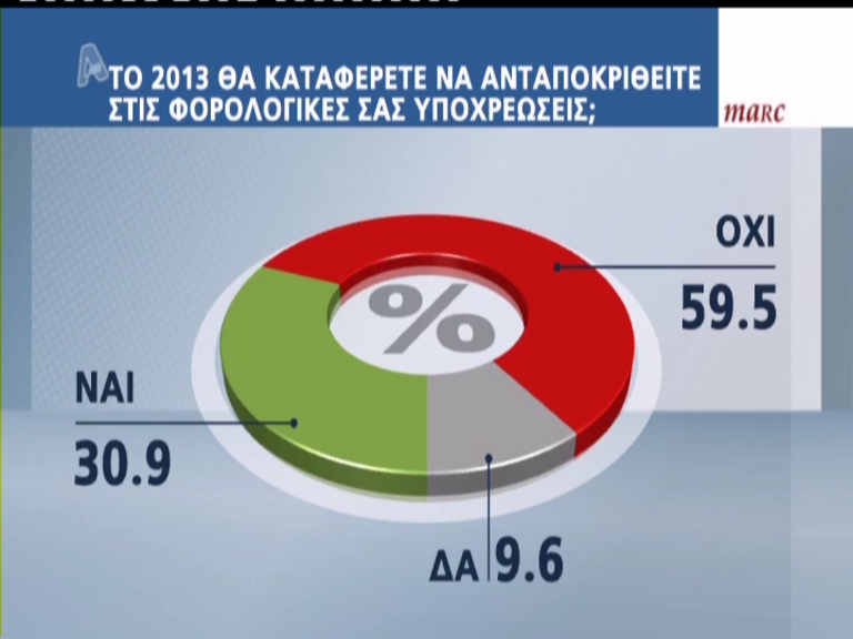 Τέλος πάνω απο τους μισούς Έλληνες πιστεύουν πως δεν θα καταφέρουν να ανταποκριθούν στις φορολογικές τους υποσχέσεις για το 2013.